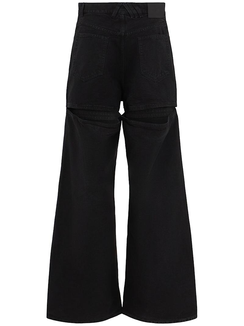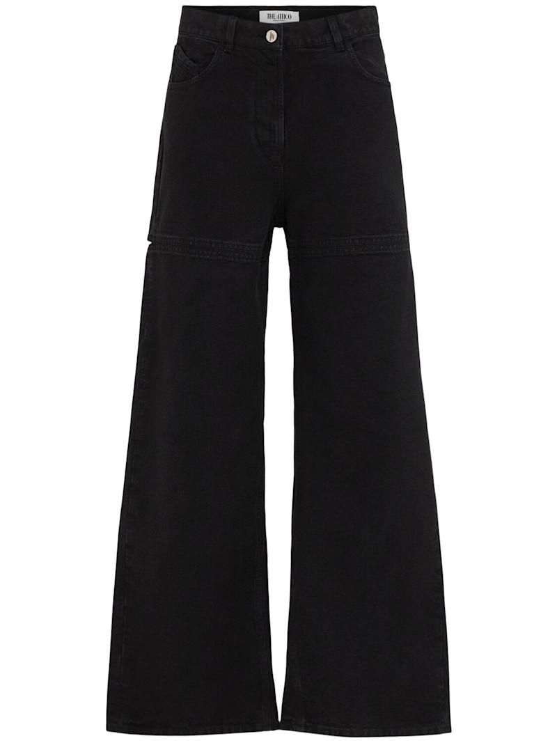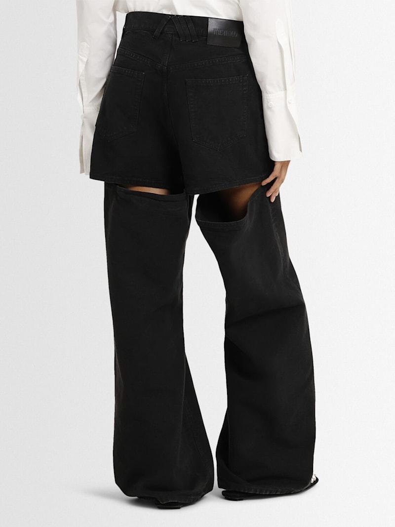 洗水帆布镂空阔腿牛仔裤 - 黑色 - 女士 - The Attico - 正面纽扣和隐藏式拉链开合.