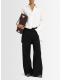 洗水帆布镂空阔腿牛仔裤