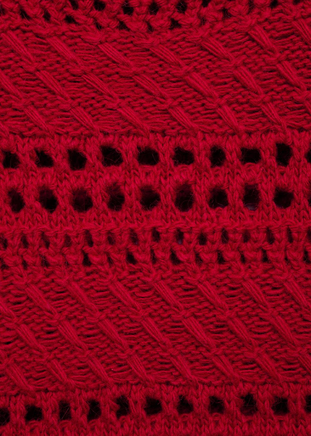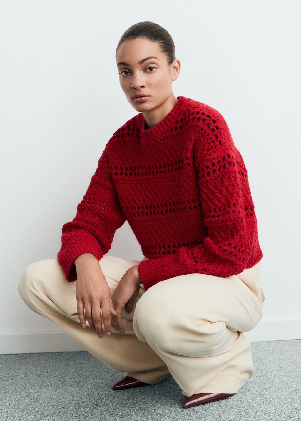Tejido de punto calado. Punto grueso. Diseño recto. Cuello redondo. Manga larga. Terminaciones en canalé. Sin cierre