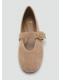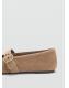 100% piel de ante. Flat. Punta redonda. Cierre de tira con hebilla