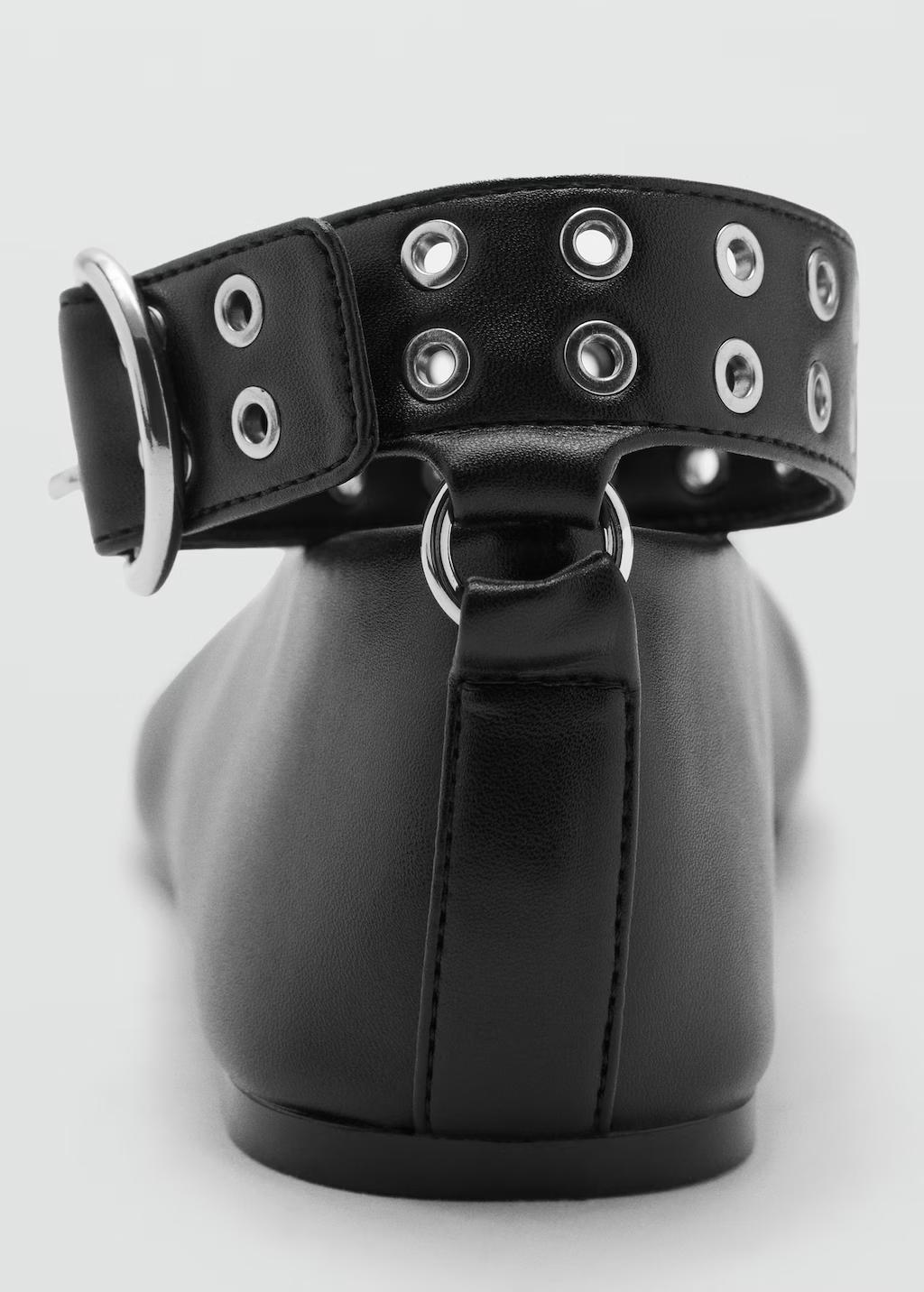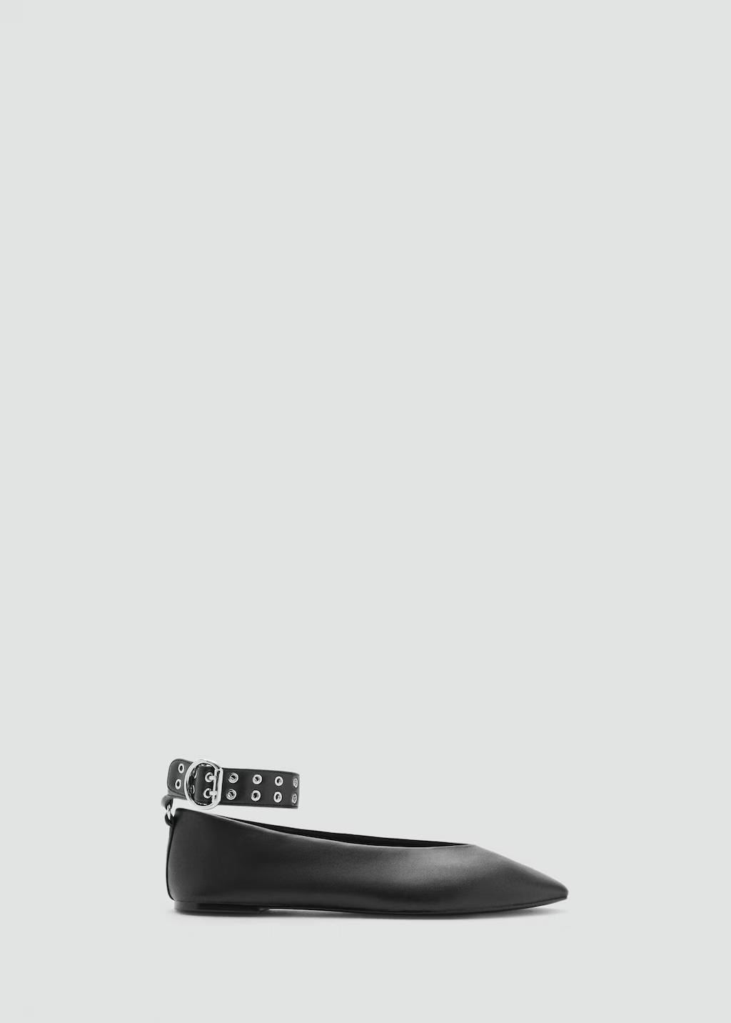 Efecto piel. Flat. Punta redonda. Pulsera en el tobillo. Detalle eyelets. Cierre de hebilla en el tobillo