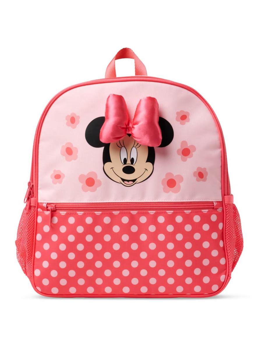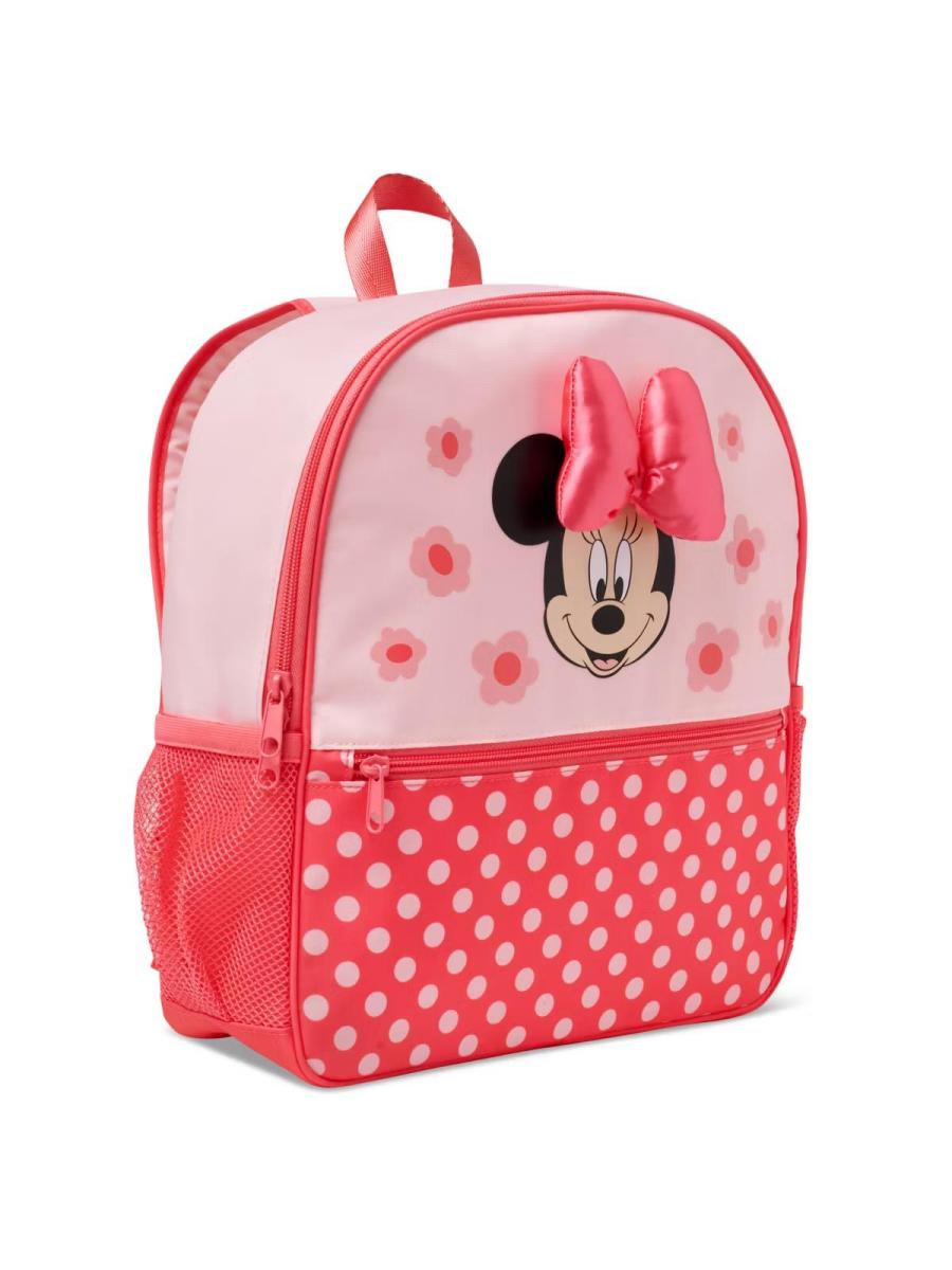 Front panel features Minnie screen art with padded satin bow appliqué and floral print