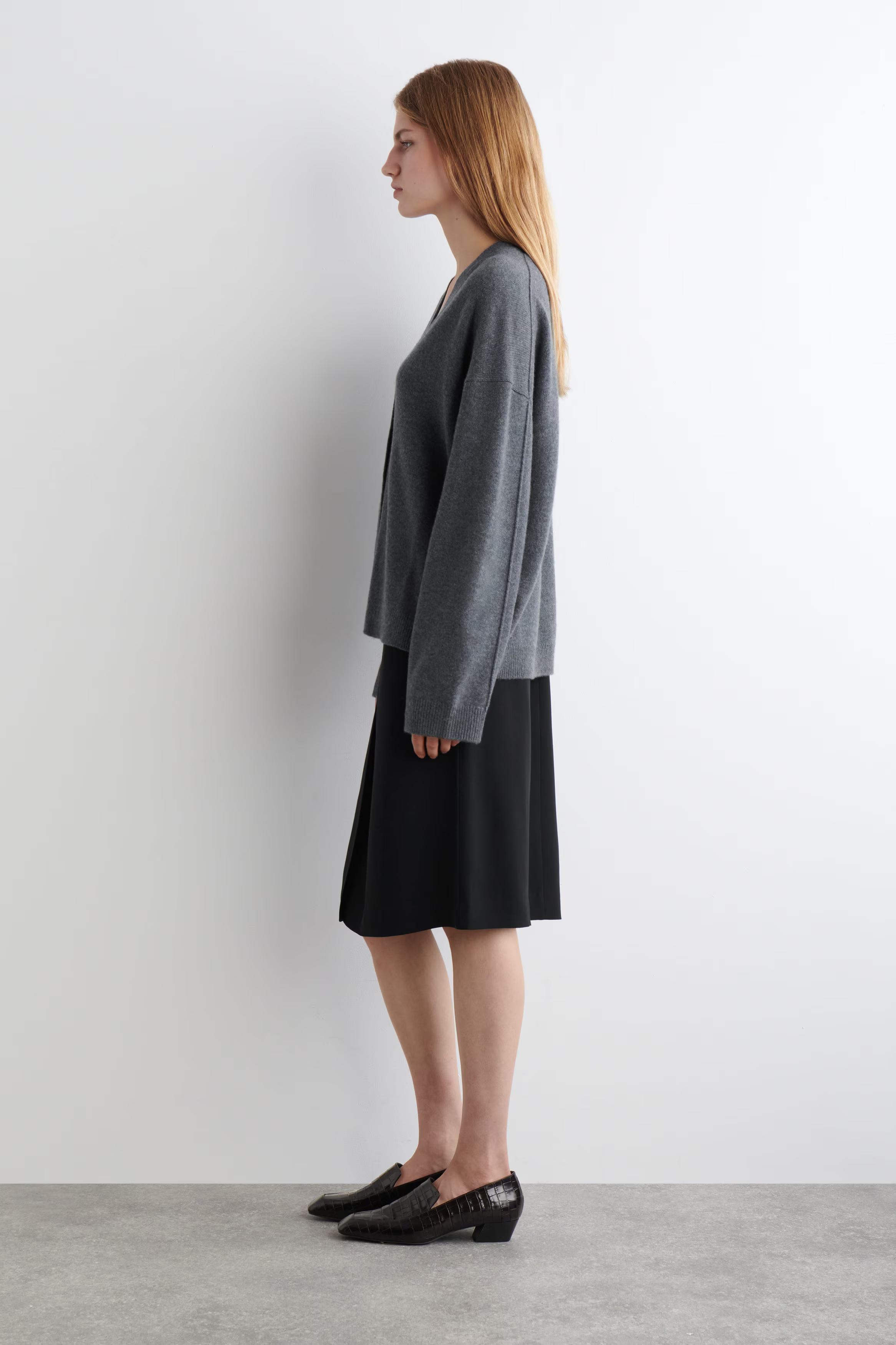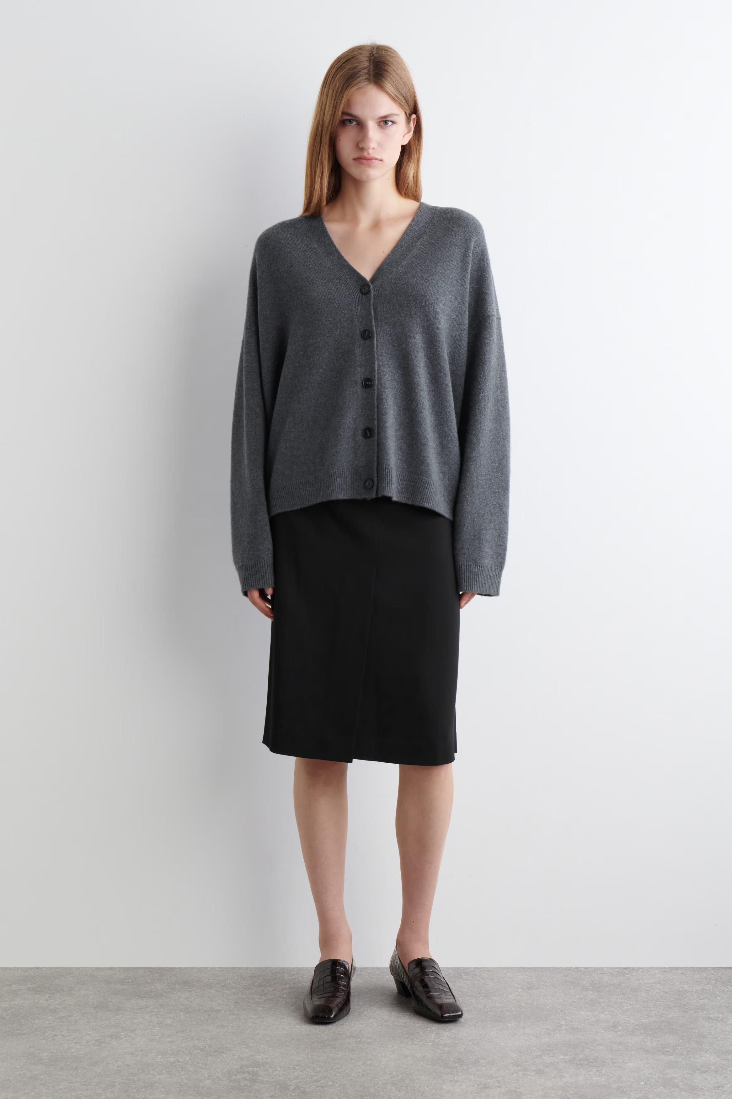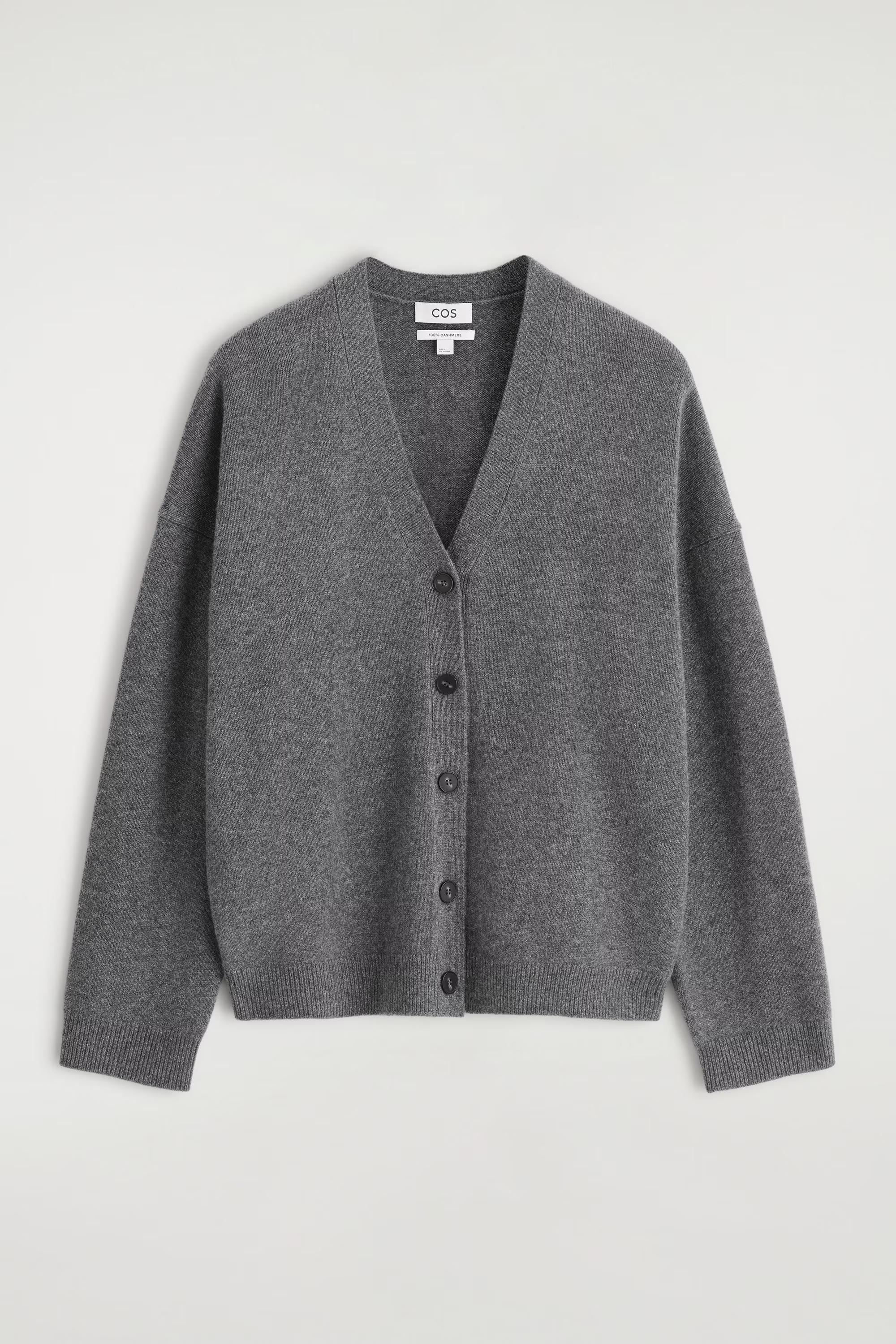 Luxuriously soft cashmere is a key tenet of the COS wardrobe. Rendered in a khaki-brown tone, this cardigan is crafted from premium Good Cashmere Standard\u0026reg; yarn and designed with a V-neckline, dropped shoulders and chunky ribbed trims.\u0026nbsp;Relaxed fitButton closureThe Good Cashmere Standard\u0026reg; is owned by Aid by Trade Foundation (AbTF) and sets out requirements on animal welfare, land management and herders' working conditions\u0026nbsp;\u0026nbsp;Shell: 100% GCS Cashmere. Excluding trims / Machine wash\u0026nbsp;Back length of size S is 63cm / Model wears a size S