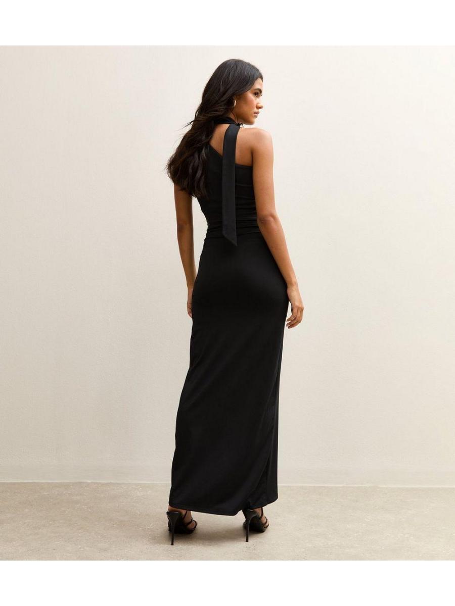 Black One Shoulder Ruched Maxi Dress