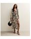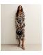 Black Floral Chiffon Ruffle Trimmed Midi Dress