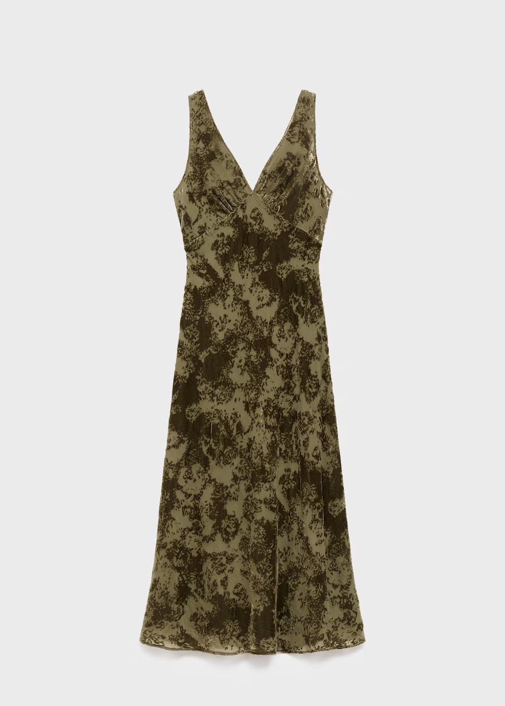 Tejido jacquard. Diseño largo. Diseño evasé. Cuello pico. Sin mangas. Tirantes anchos. Cierre de cremallera. Forro interior. Exclusivo Online. Esta prenda pertenece a nuestra colección de evento, diseñada para convertirte en la invitada perfecta en cualquier fiesta, boda o ceremonia