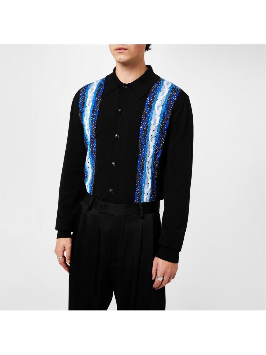 This Crystal Long Sleeve Polo Shirt from Amiri is the perfect addition to any stylish wardrobe. Crafted in a soft wool composition, this polo shirt is cut in a regular fit and features a full button placket for a secure fit with a pointed collar, long sleeves, a straight hemline and ribbed trims to the cuffs and hem for a comfortable wear. The look is finished with a knitted weave pattern to each side with crystal embellishments for a stand-out style. Care: Dry clean only.