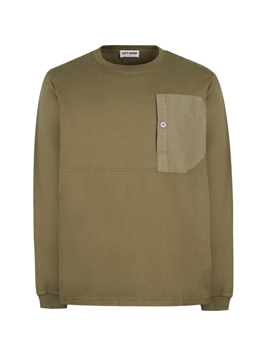 Left Hand presents the Pocket Tee: an elevated staple for your everyday wardrobe. Expertly fashioned from organic cotton jersey, this men's sustainable t-shirt showcases a crew neckline framed by full-length sleeves for excellent coverage. The contrasting ripstop fabric patch pocket on the chest sports a metal button at entry and adds a unique, fashion-forward touch. Ribbed trims offer all-day comfort and provide freedom of movement so you can go about your day without distraction.