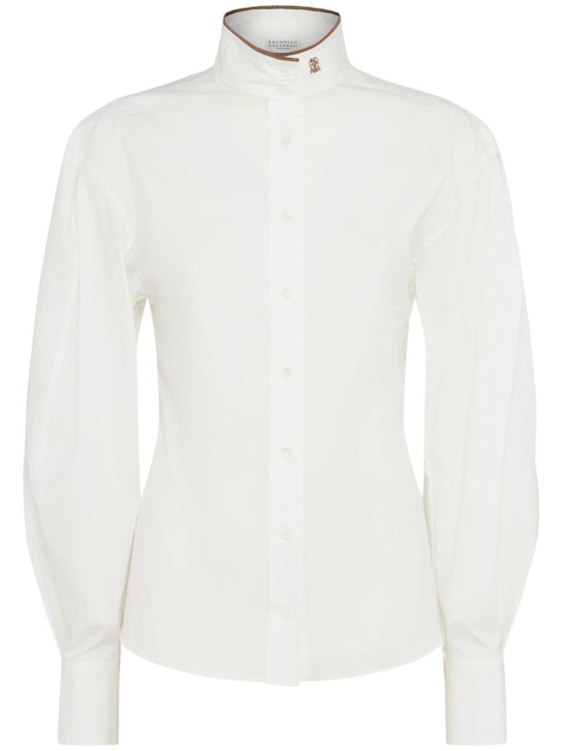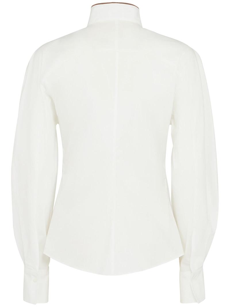 泡泡袖府绸衬衫 - 白色 - 女士 - Brunello Cucinelli - 正面纽扣开合.