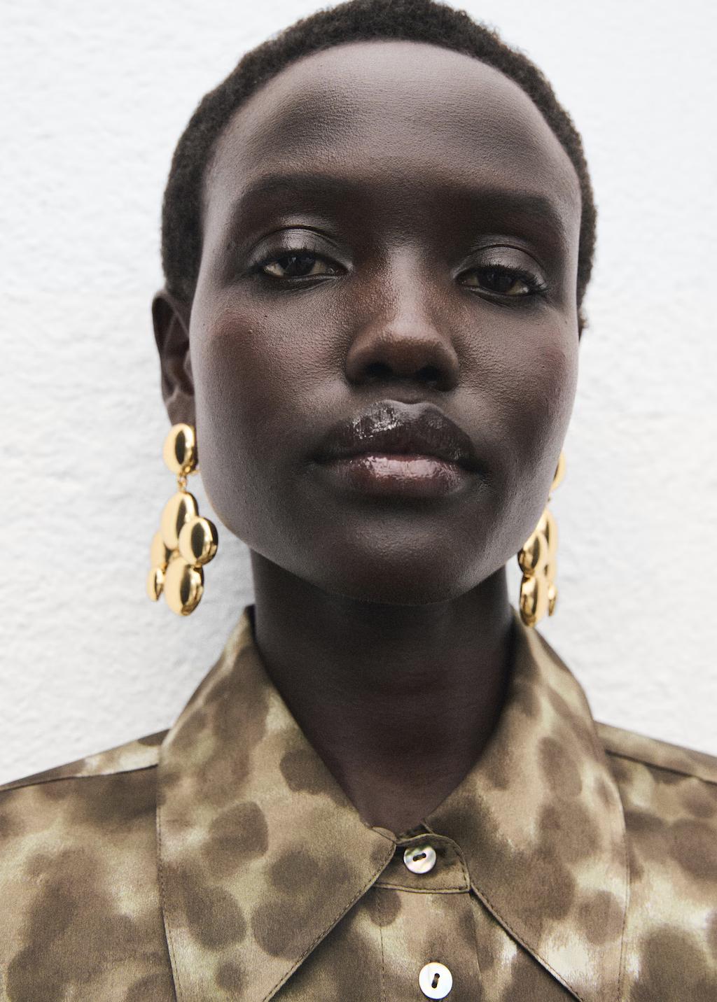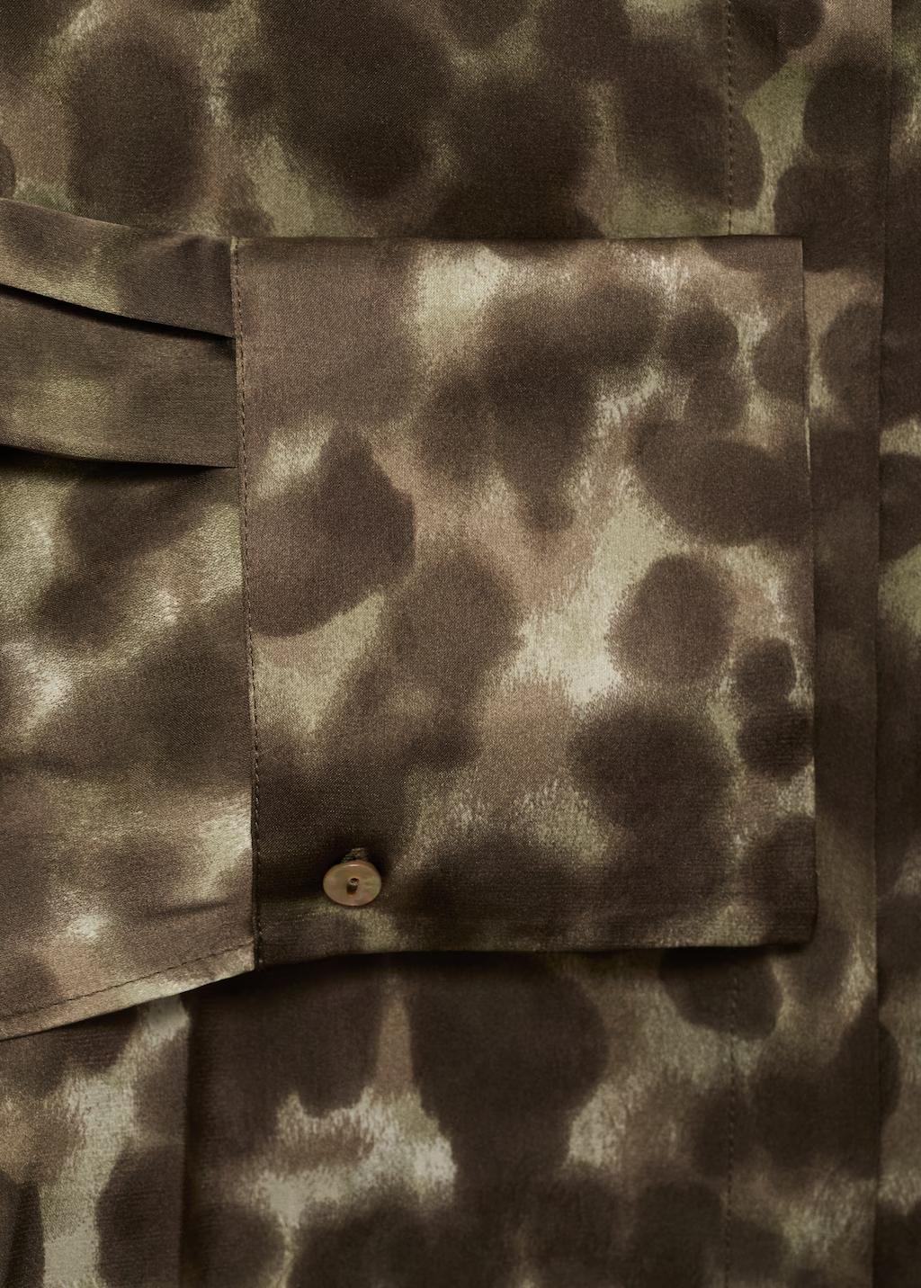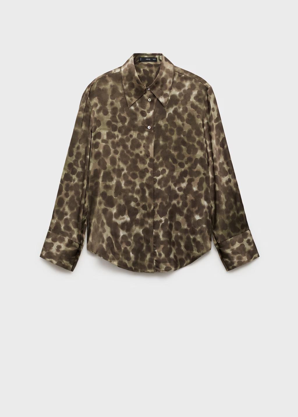 Confeccionada en tejido satinado, esta prenda presenta un diseño recto con estampado. Incluye un cuello camisero y mangas largas con puños abotonados. Disponible en tallas Plus