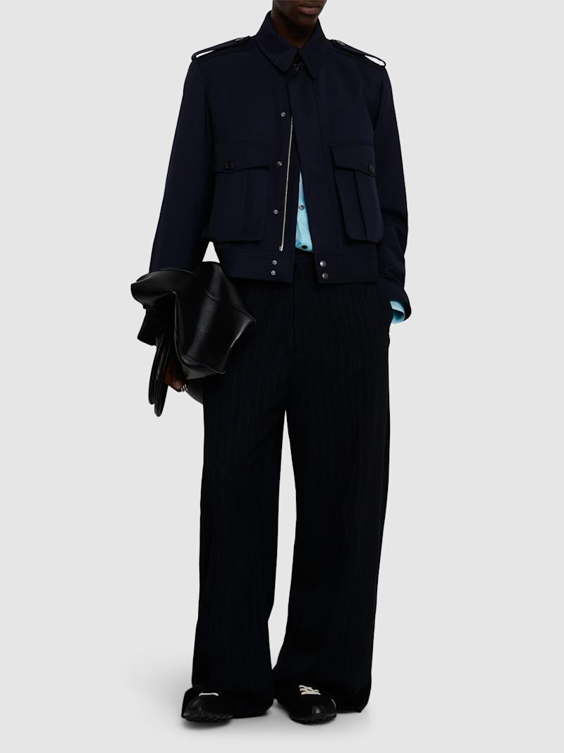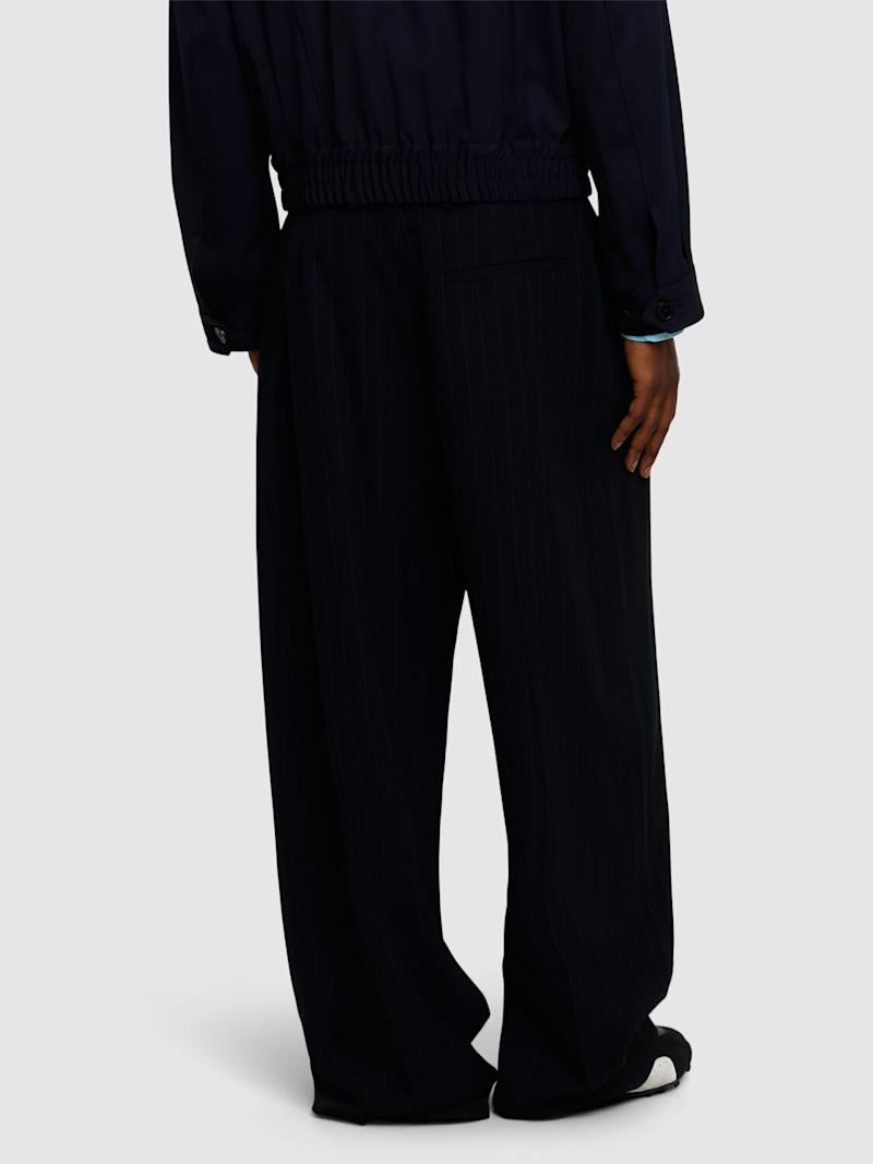 Pasant Vis条纹裤子 - 海军蓝 - 男士 - Acne Studios - 正面纽扣和隐藏式拉链开合.