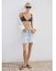 Tejido de algodón estilo tejano vaquero. Diseño corto. Diseño recto. Tiro alto. Trabillas. Cinco bolsillos. Bajo deshilachado. Cierre de botón y cremallera. Disponible Plus. Exclusivo Online