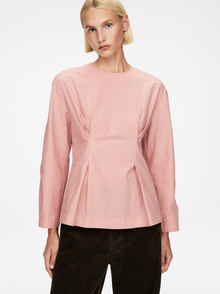 Long-sleeved top crafted from cotton. Designed with fixed pleats at the waist and a keyhole opening with button fastening at the centre back. Regular fit.ARKET/Women's clothes/Women's tops/Women's tops/Women's long-sleeve tops