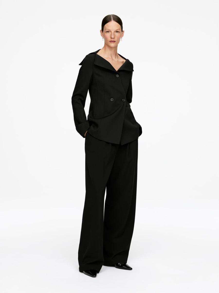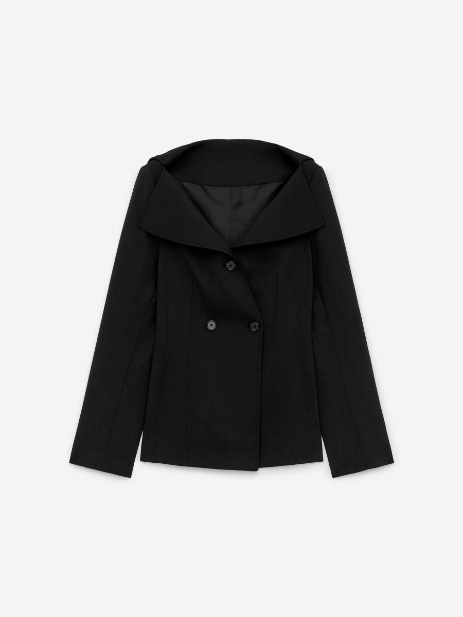 Blazer with an off-shoulder neckline and button closure, featuring a sculpted waist and a hint of stretch for comfort. The style contains 43% RWS wool (TE-00047206). Products certified to the Responsible Wool Standard (RWS) contain wool fiber from farms independently certified to animal welfare and land management requirements.ARKET/Women's clothes/Women's coats and jackets/Women's coats and jackets/Women's blazers