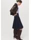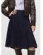 Confeccionada en tejido de algodón estilo tejano vaquero, esta prenda presenta un diseño midi y evasé. Su tiro medio se complementa con un cierre de cremallera lateral para un ajuste cómodo y práctico