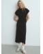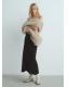 Confeccionada en tejido de punto fino, esta falda presenta un diseño midi con corte evasé. Su tiro medio y cintura elástica aseguran comodidad. Cuenta con un jersey a conjunto