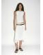 Esta falda de encaje presenta un patrón intrincado que añade textura. Su diseño asimétrico en el bajo crea un efecto visual dinámico. Además, tiene una camiseta a juego para un 'total look', ideal para quienes buscan un equilibrio entre lo clásico y lo moderno