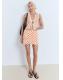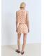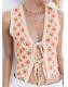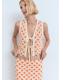 Este diseño recto, confeccionado en delicado tejido de crochet, se distingue por su atrevido cuello de pico y sus tirantes anchos que realzan la silueta. El cierre de lazos en la parte delantera añade un toque romántico, mientras que el bajo festoneado aporta un acabado exquisito, creando un total look que captura la esencia del estilo contemporáneo