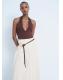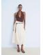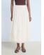 Confeccionada en tejido 100% algodón, esta falda presenta un diseño largo y evasé, con detalles en puntilla y un panel fruncido en la cintura que le aporta textura. Incluye un cierre de cremallera lateral y forro de algodón
