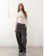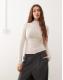 Monki long sleeve sheer t-shirt with front seam detail in beige