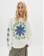 Graphic and text print on front, back, and sleeves