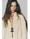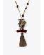 Collar combinado de múltiples eslabones metálicos y piezas circulares realizadas en resina a color. Colgante de pieza labrada con pájaro en relieve. Acabados con flecos metálicos. Cierre con mosquetón.
