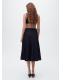 Con un diseño midi y evasé, esta prenda presenta un elegante plisado que añade movimiento