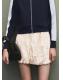 Confeccionada en tejido de algodón con efecto arrugado, esta falda presenta un diseño corto y estilo globo. La cintura con goma elástica asegura comodidad