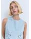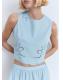 Confeccionado en tejido 100% algodón, este top crop destaca por sus detalles bordados y sus elegantes terminaciones festoneadas. El diseño, con cuello redondo y tirantes anchos, ofrece una base clásica que se realza con los bordados meticulosos y las festoneadas terminaciones, añadiendo un toque de sofisticación y singularidad que hacen de esta pieza un verdadero protagonista en cualquier guardarropa