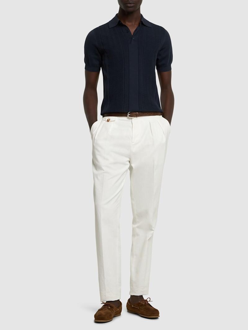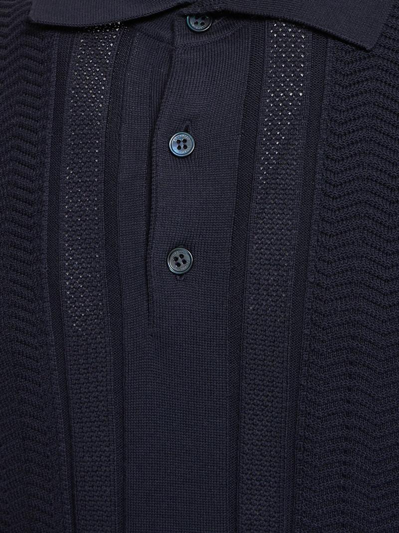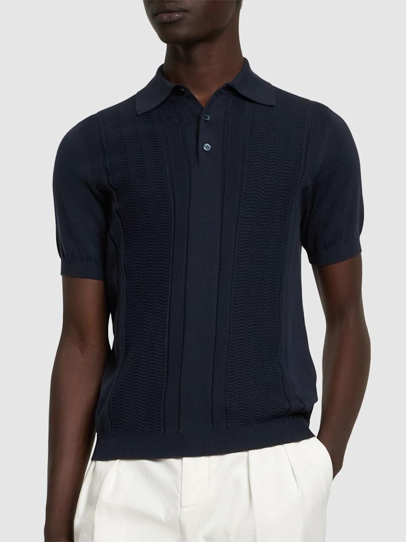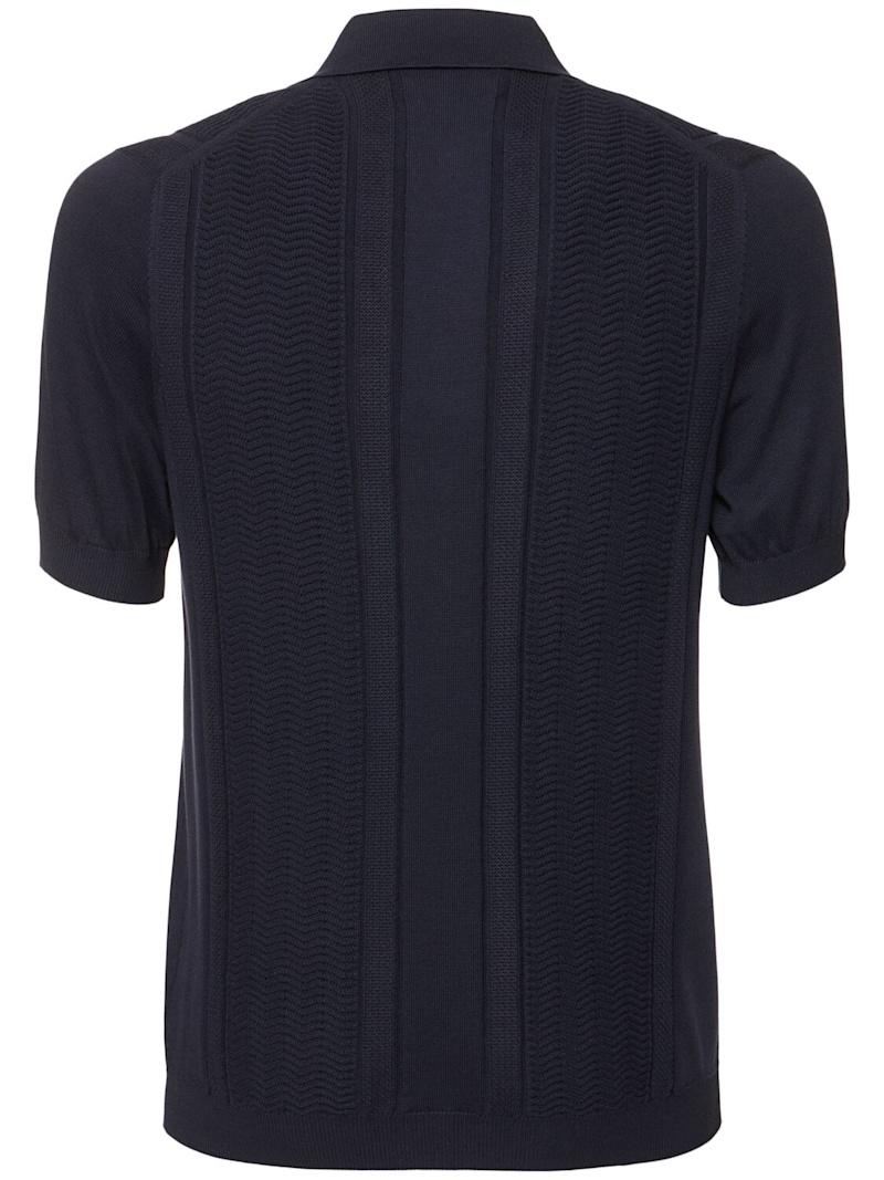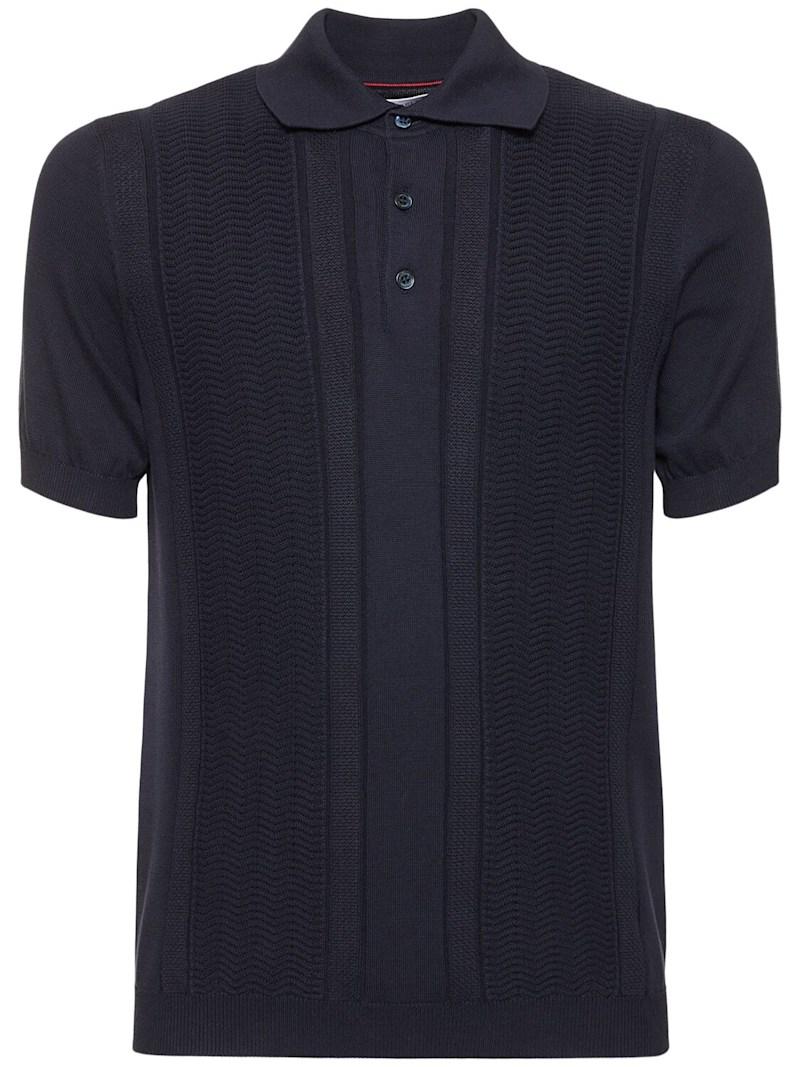 棉质V形纹POLO衫 - 黑色 - 男士 - Brunello Cucinelli - 正面半开襟纽扣.