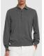 棉质长袖POLO衫 - Grigio Scuro - 男士 - Brunello Cucinelli - 正面半开襟纽扣.