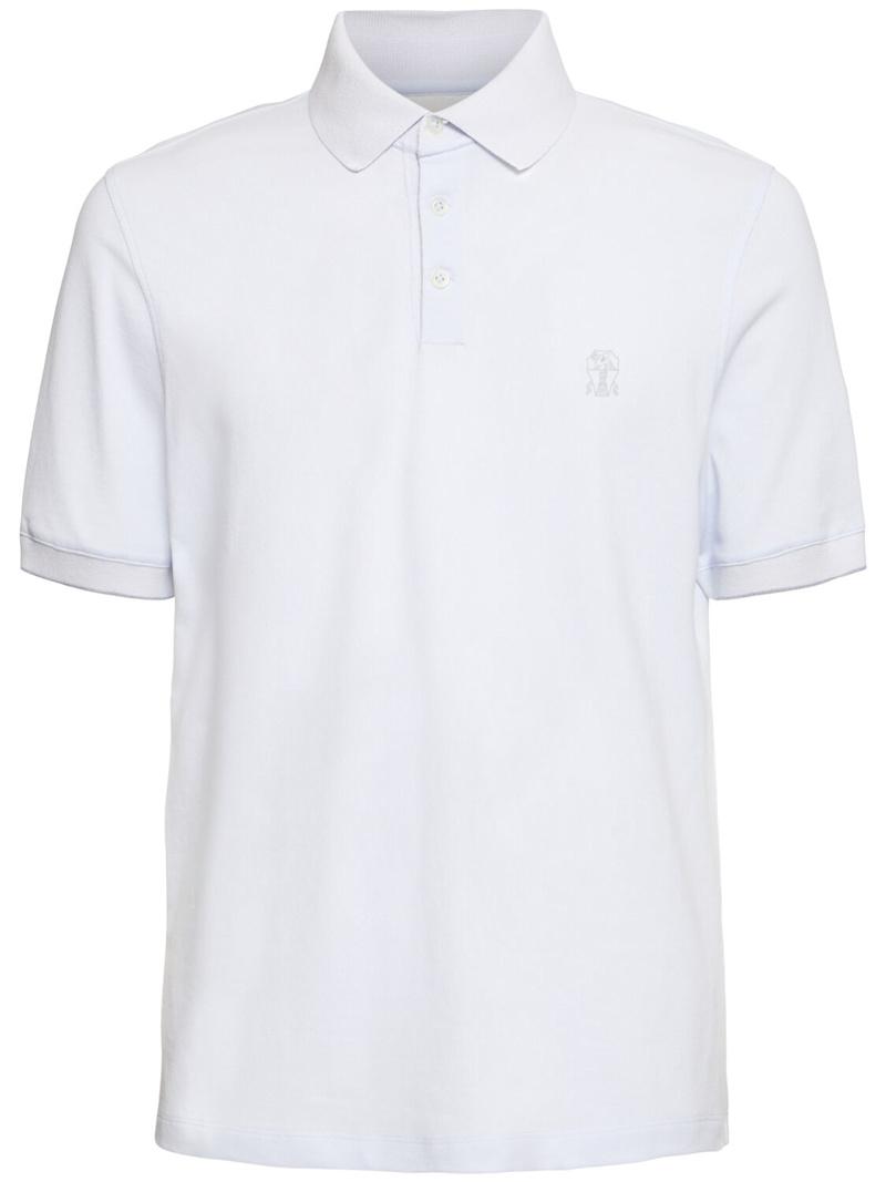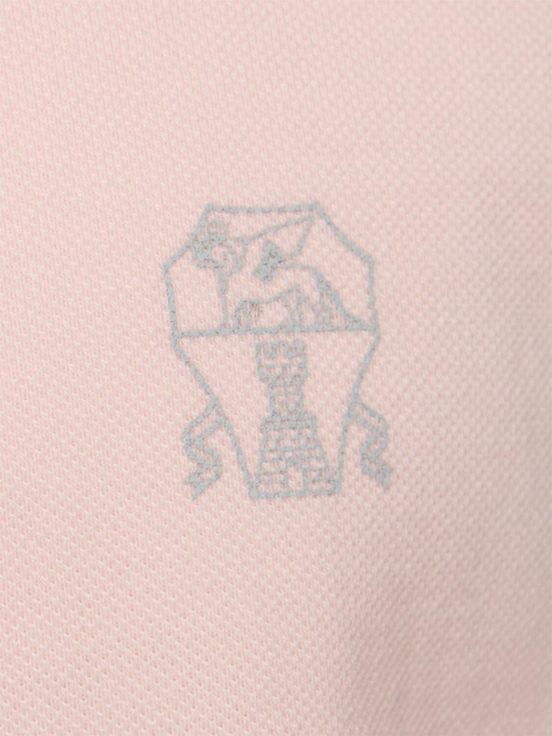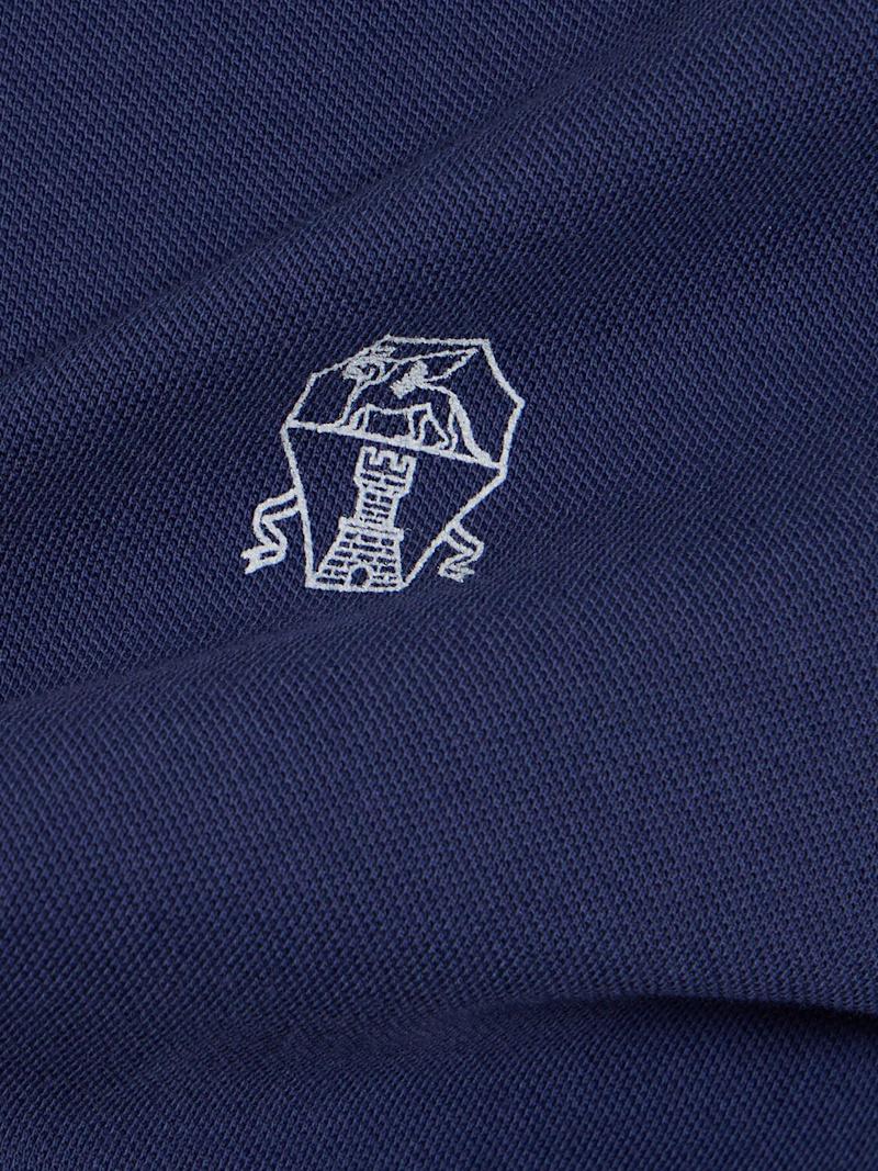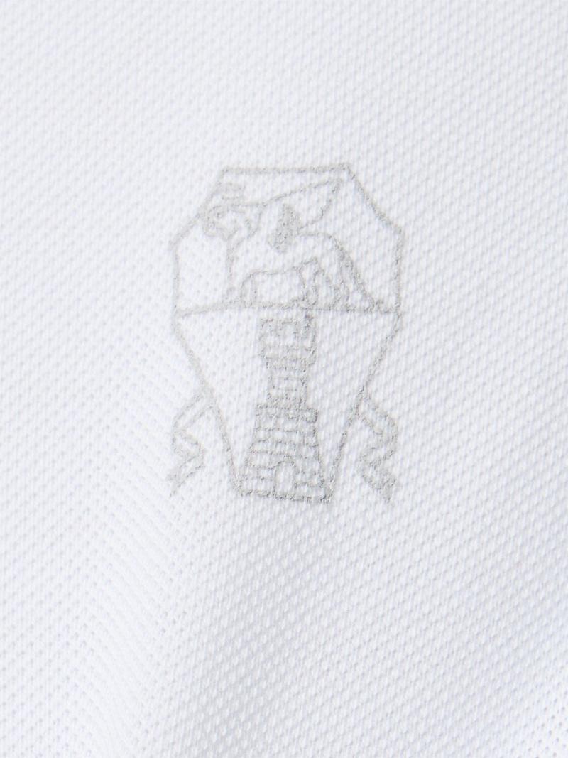 棉质珠地网眼布logo POLO衫 - Cielogrigio - 男士 - Brunello Cucinelli - 正面半开襟纽扣.