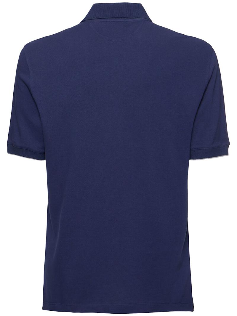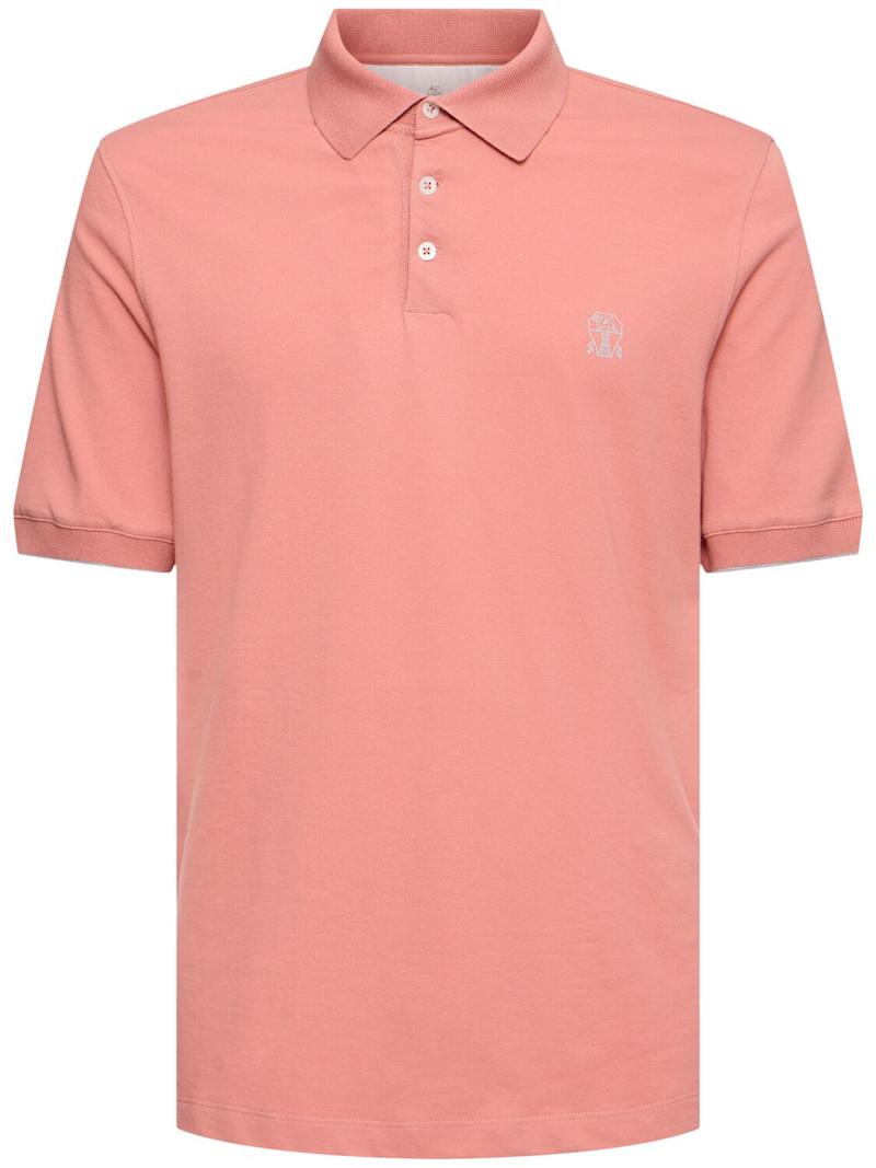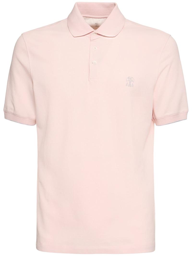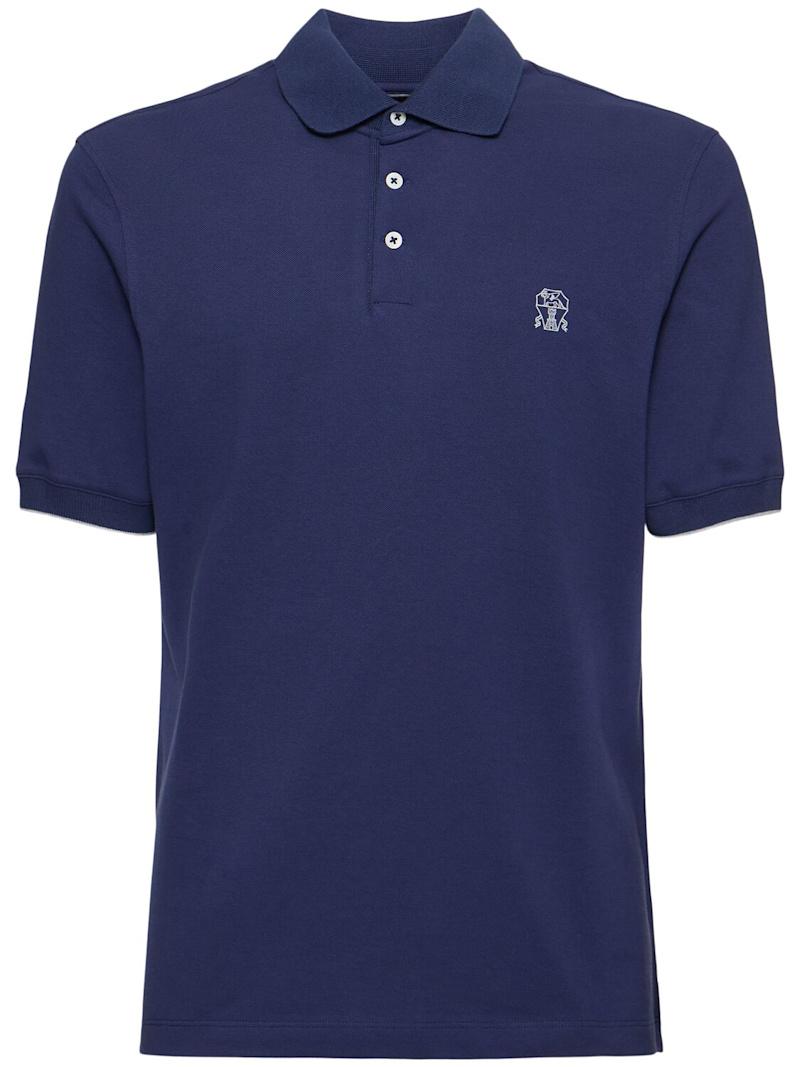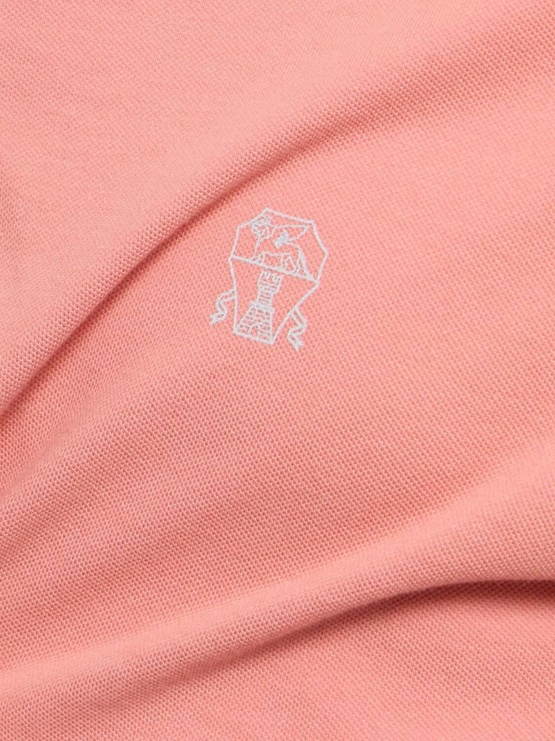 棉质珠地网眼布logo POLO衫 - Cielogrigio - 男士 - Brunello Cucinelli - 正面半开襟纽扣.