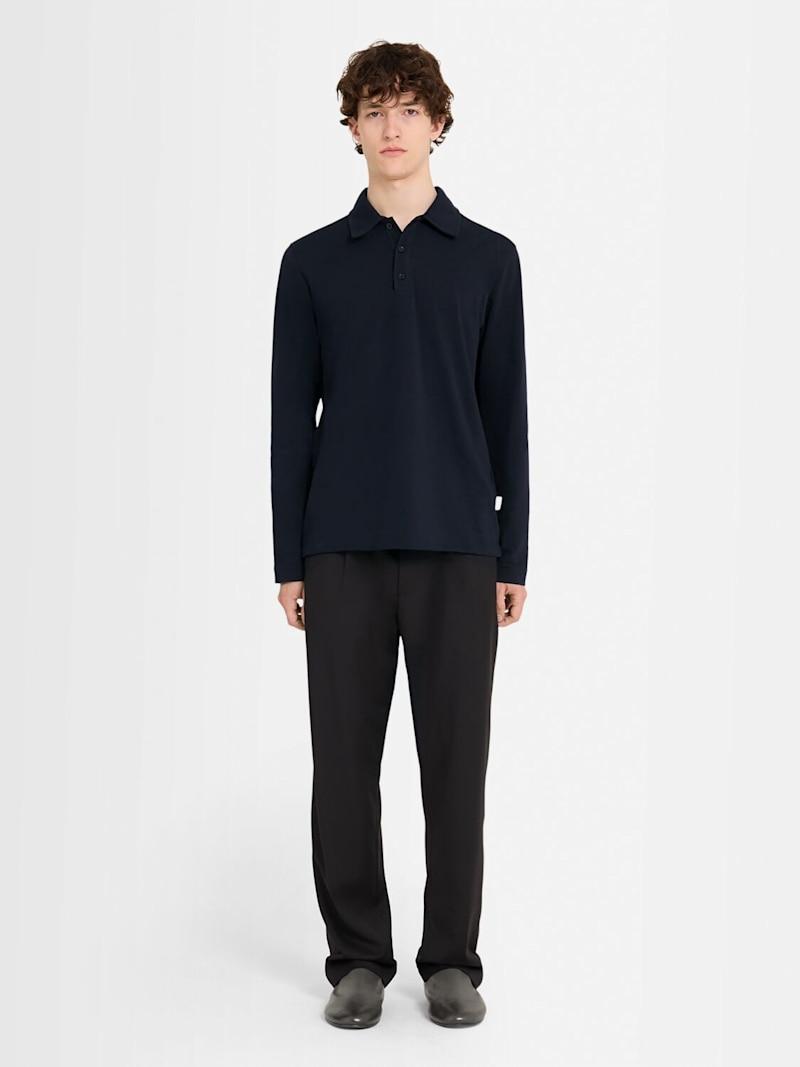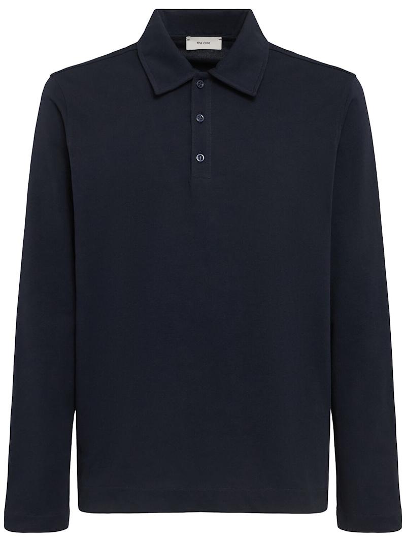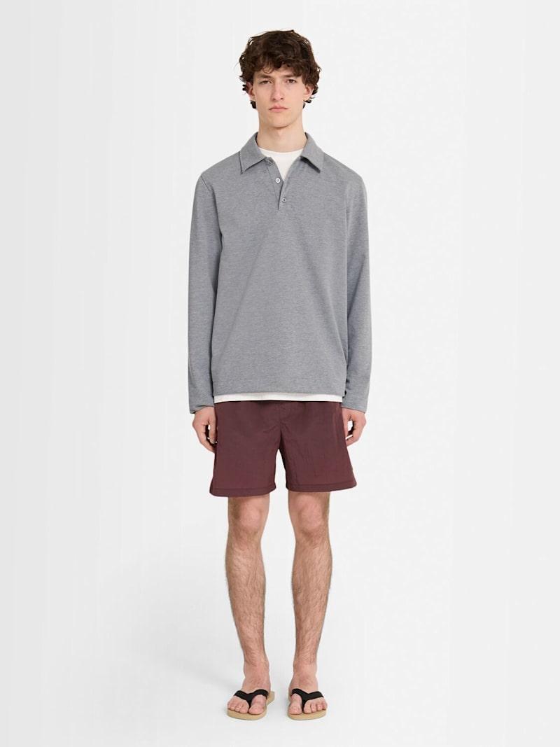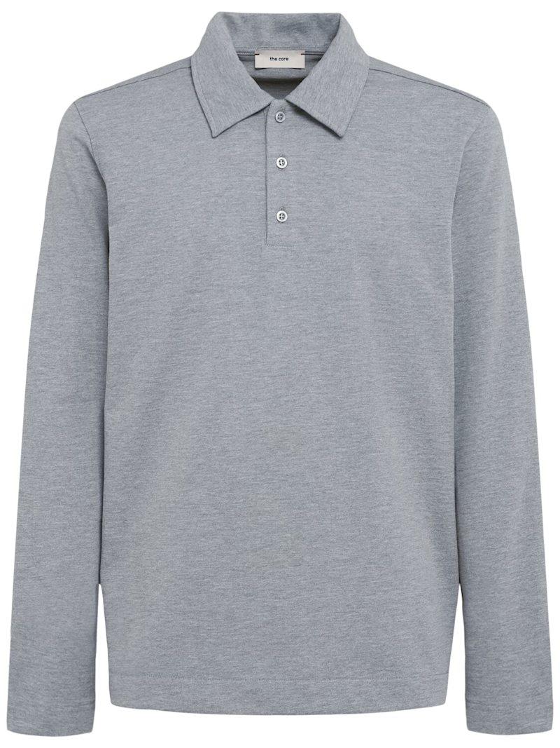经典长袖棉质针织POLO衫 - 灰色 - 男士 - The Core - 经典polo领.