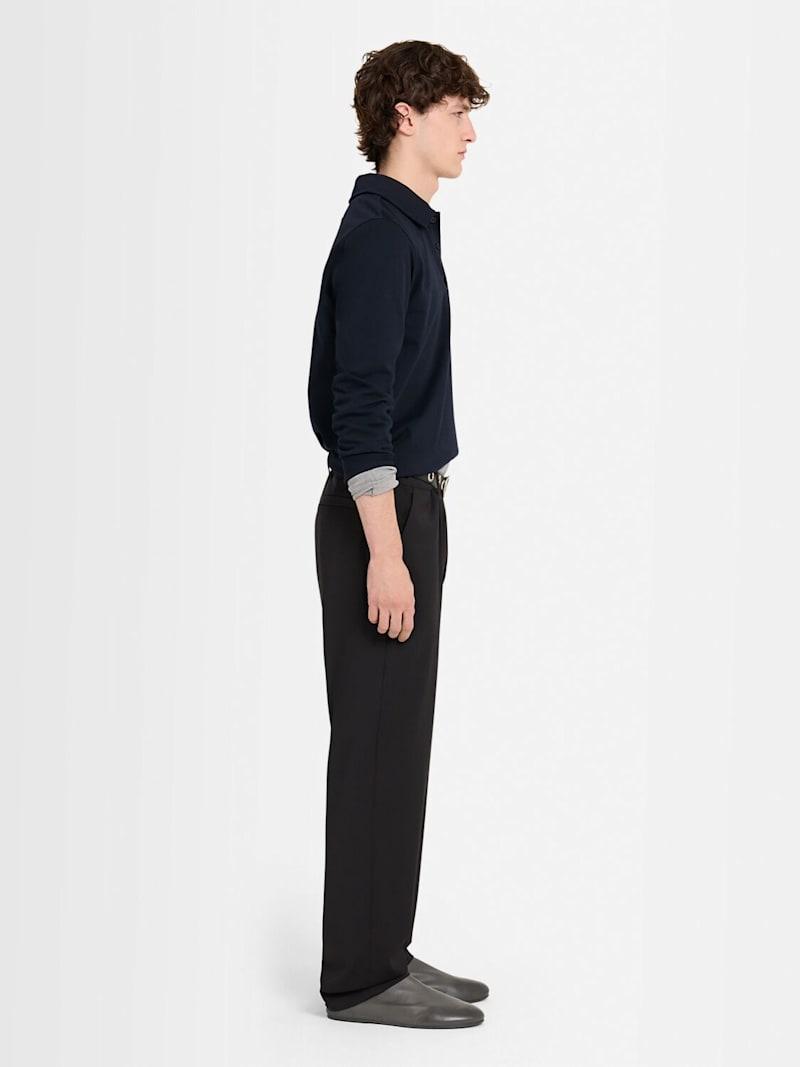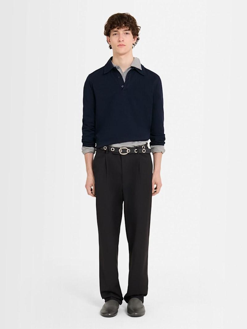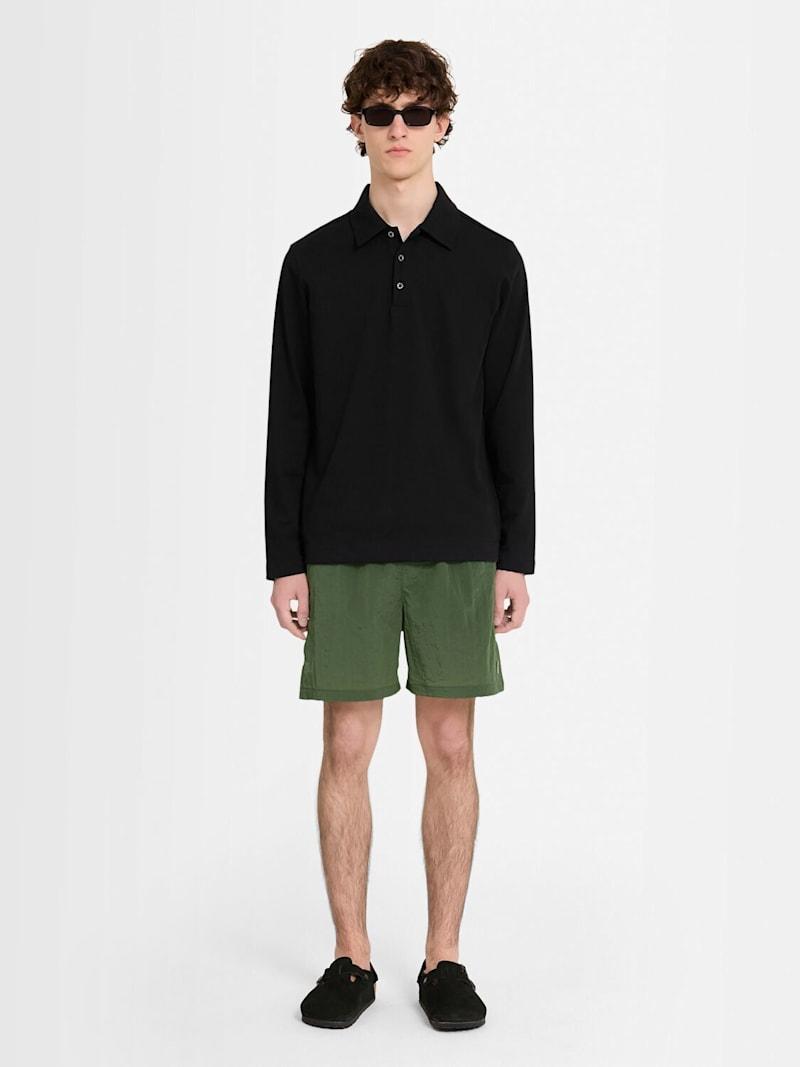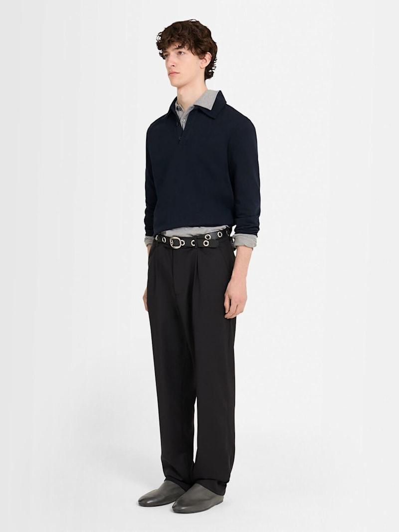 经典长袖棉质针织POLO衫 - 灰色 - 男士 - The Core - 经典polo领.