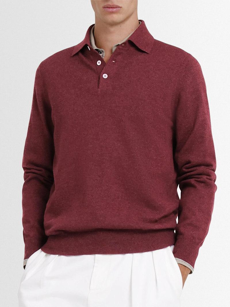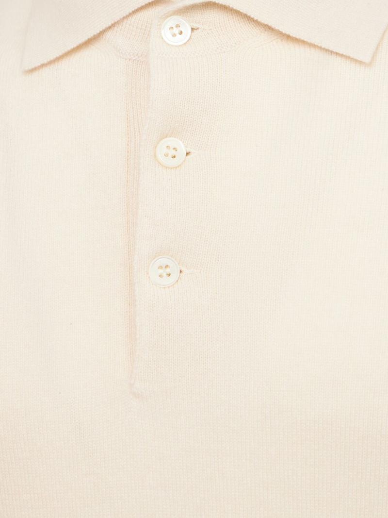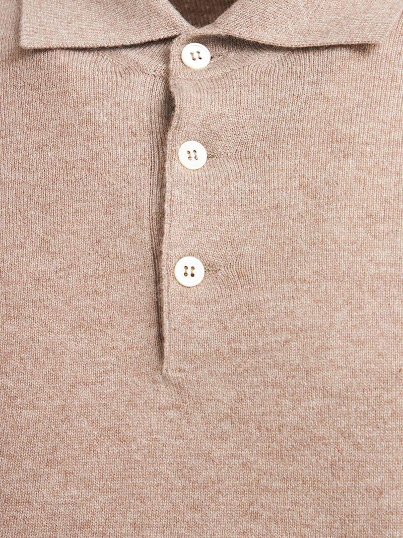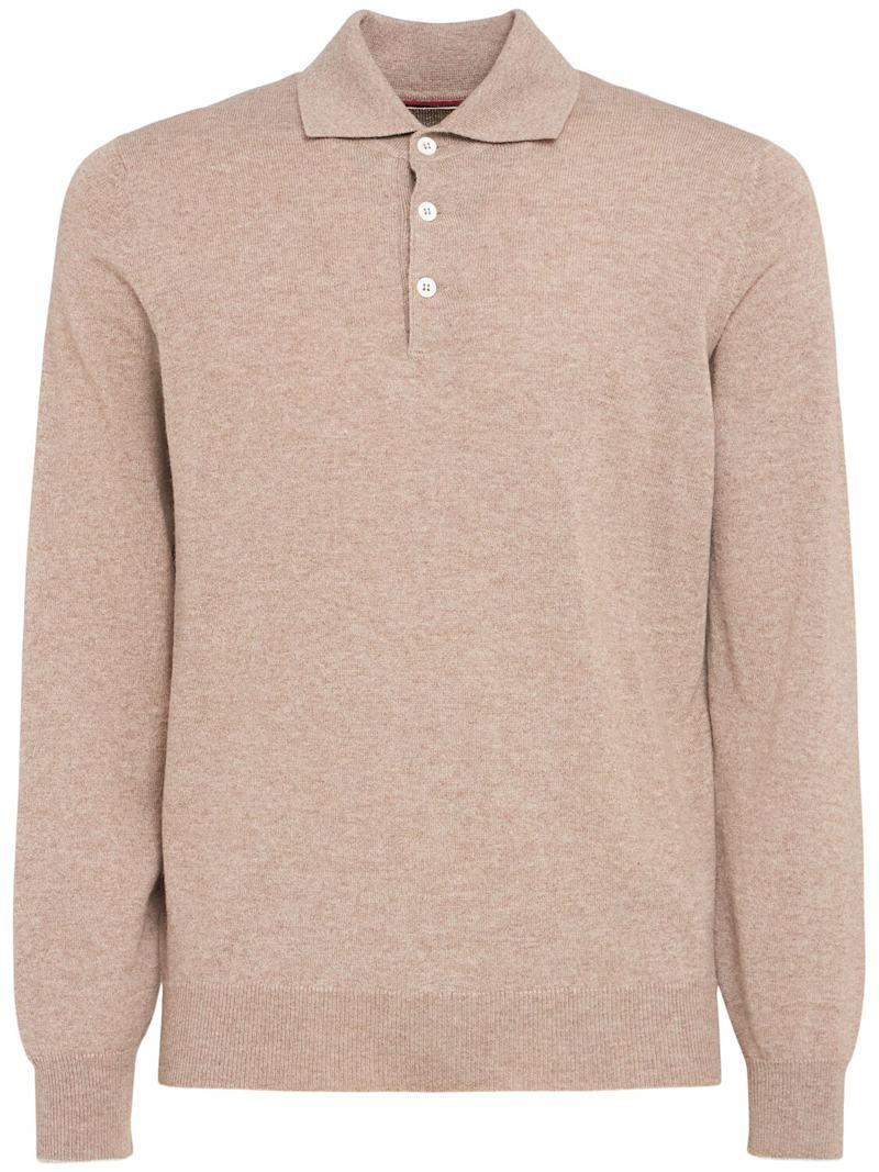 羊绒针织长袖POLO衫 - 淡褐色 - 男士 - Brunello Cucinelli - 正面半开襟纽扣.