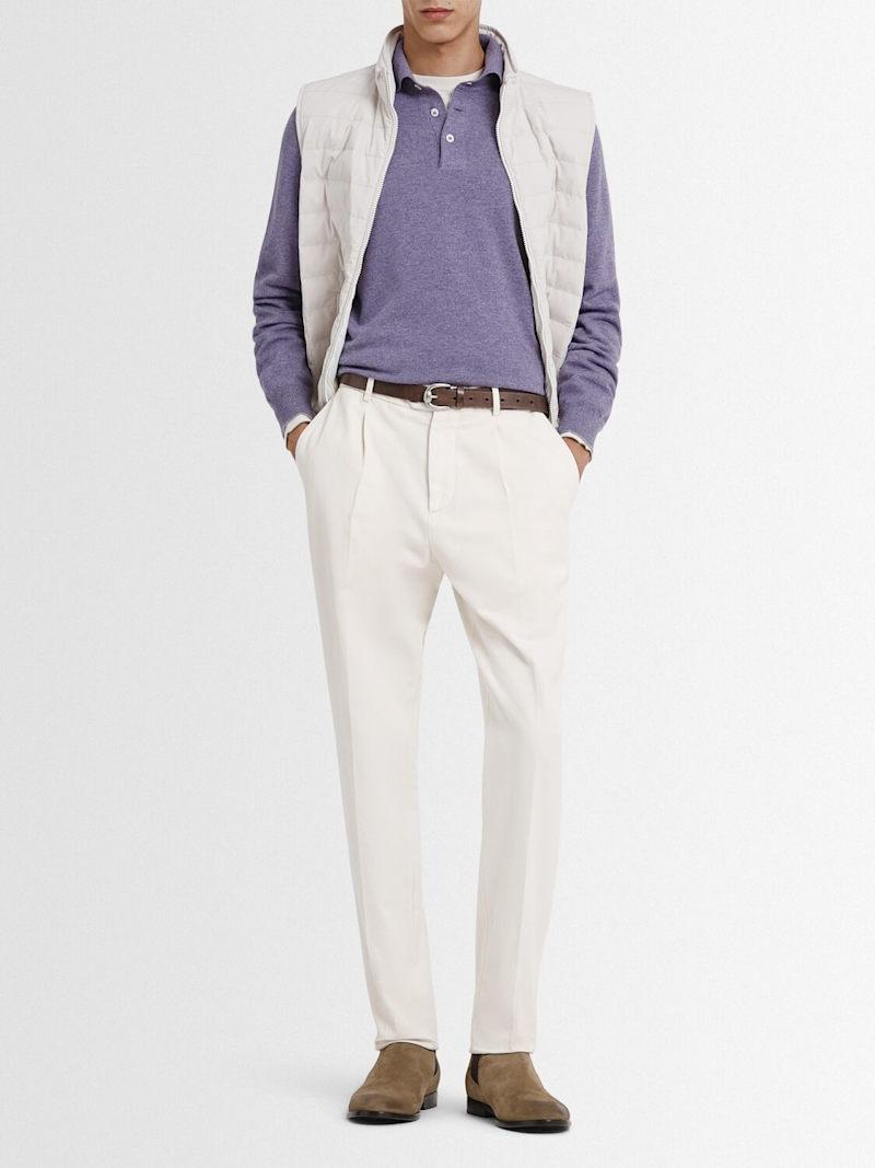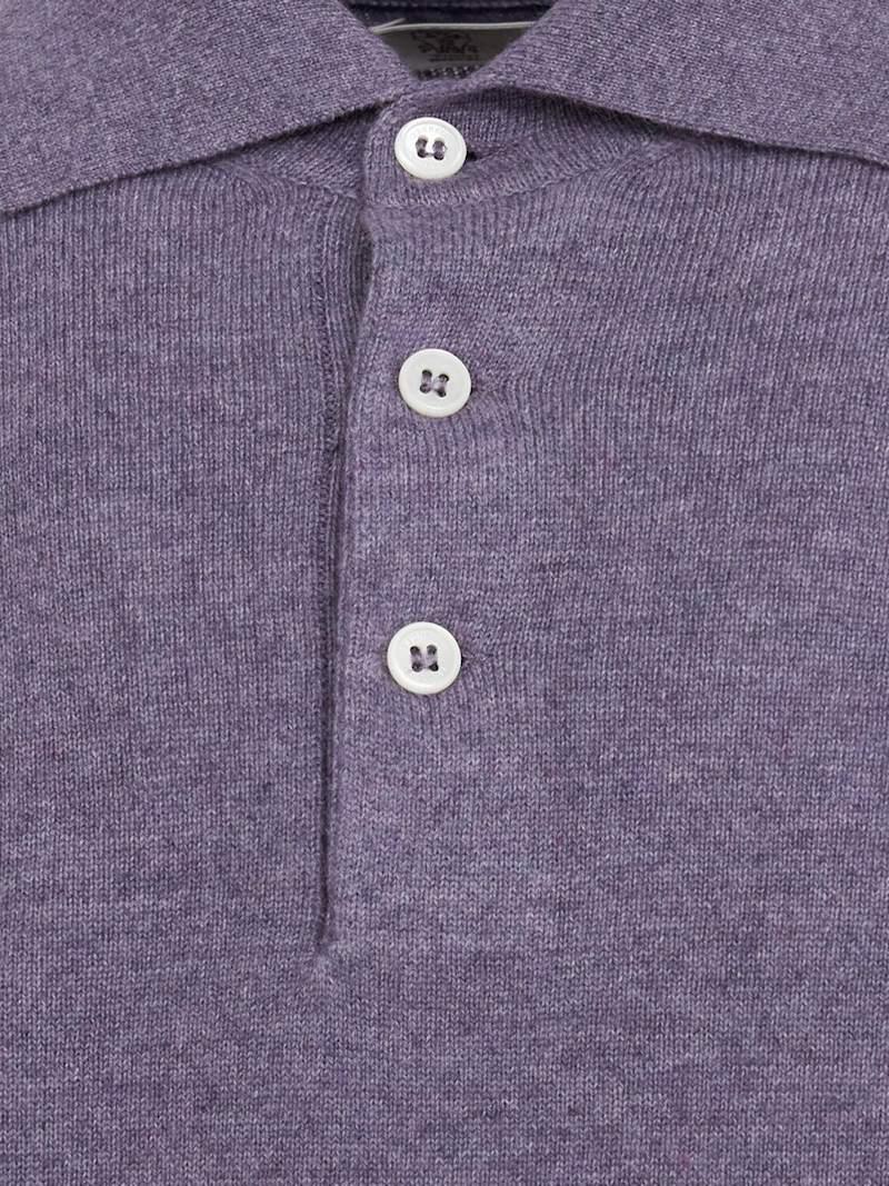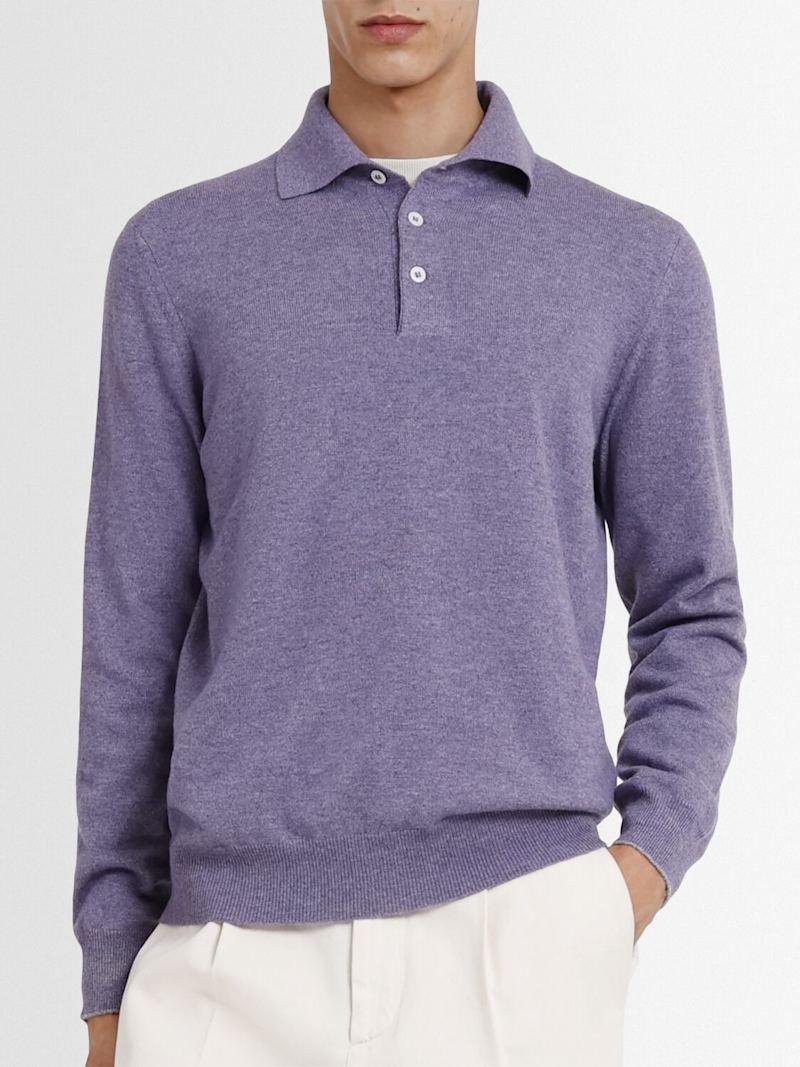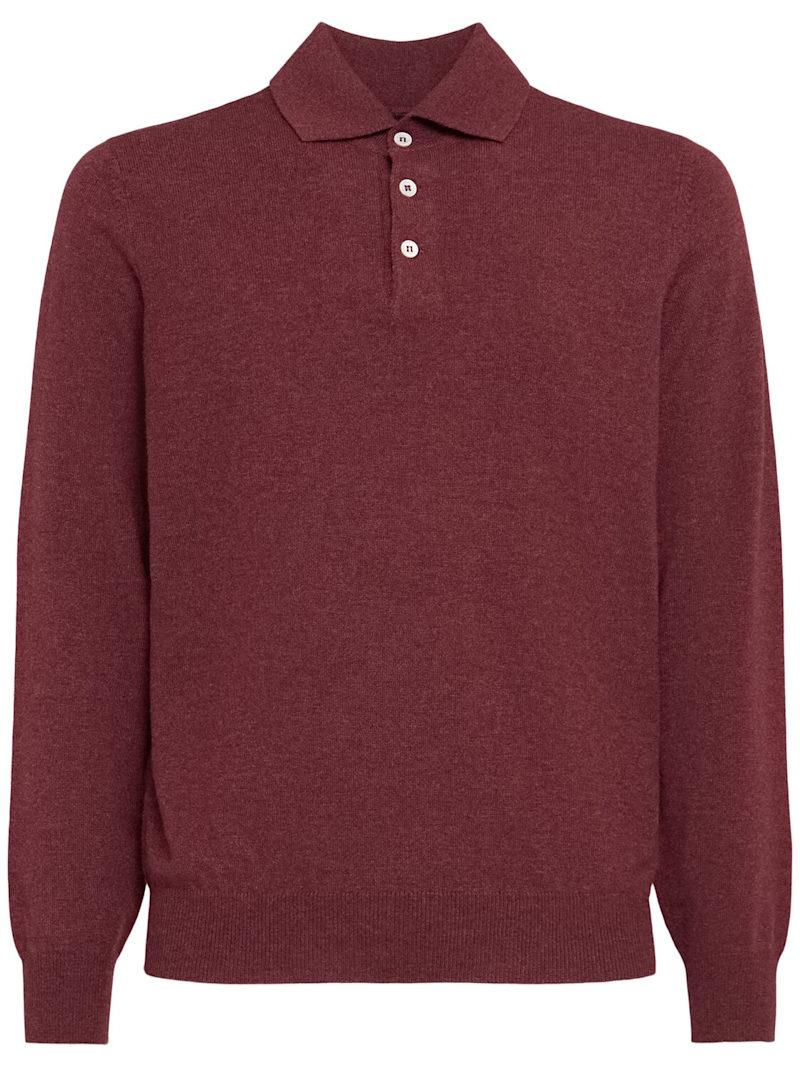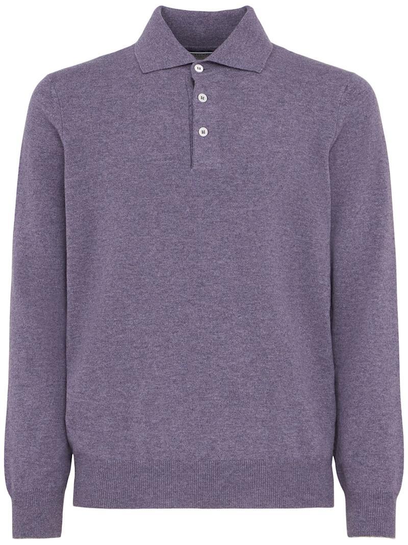 羊绒针织长袖POLO衫 - 淡褐色 - 男士 - Brunello Cucinelli - 正面半开襟纽扣.