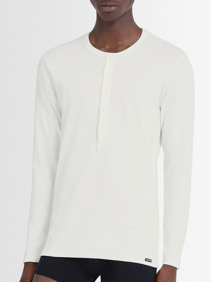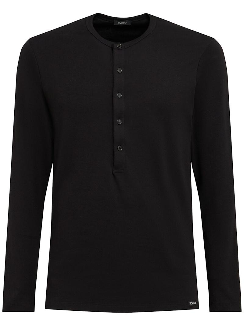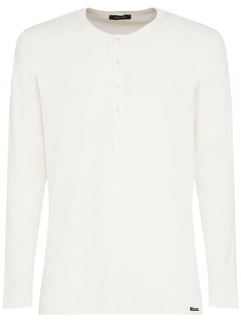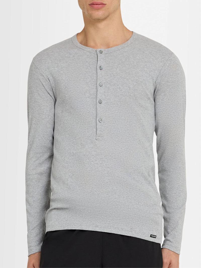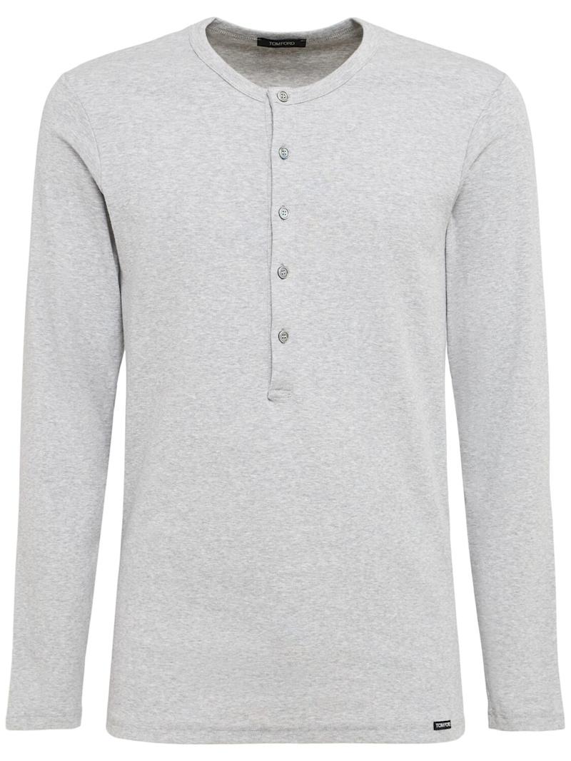Henley长袖针织T恤 - 灰色 - 男士 - Tom Ford - 正面半长纽扣开合