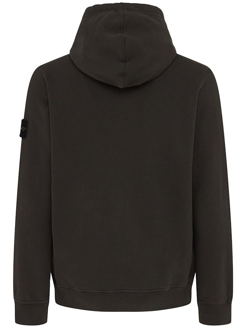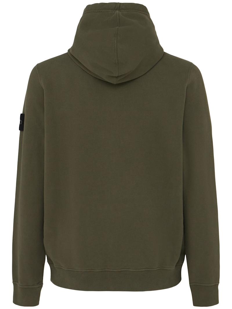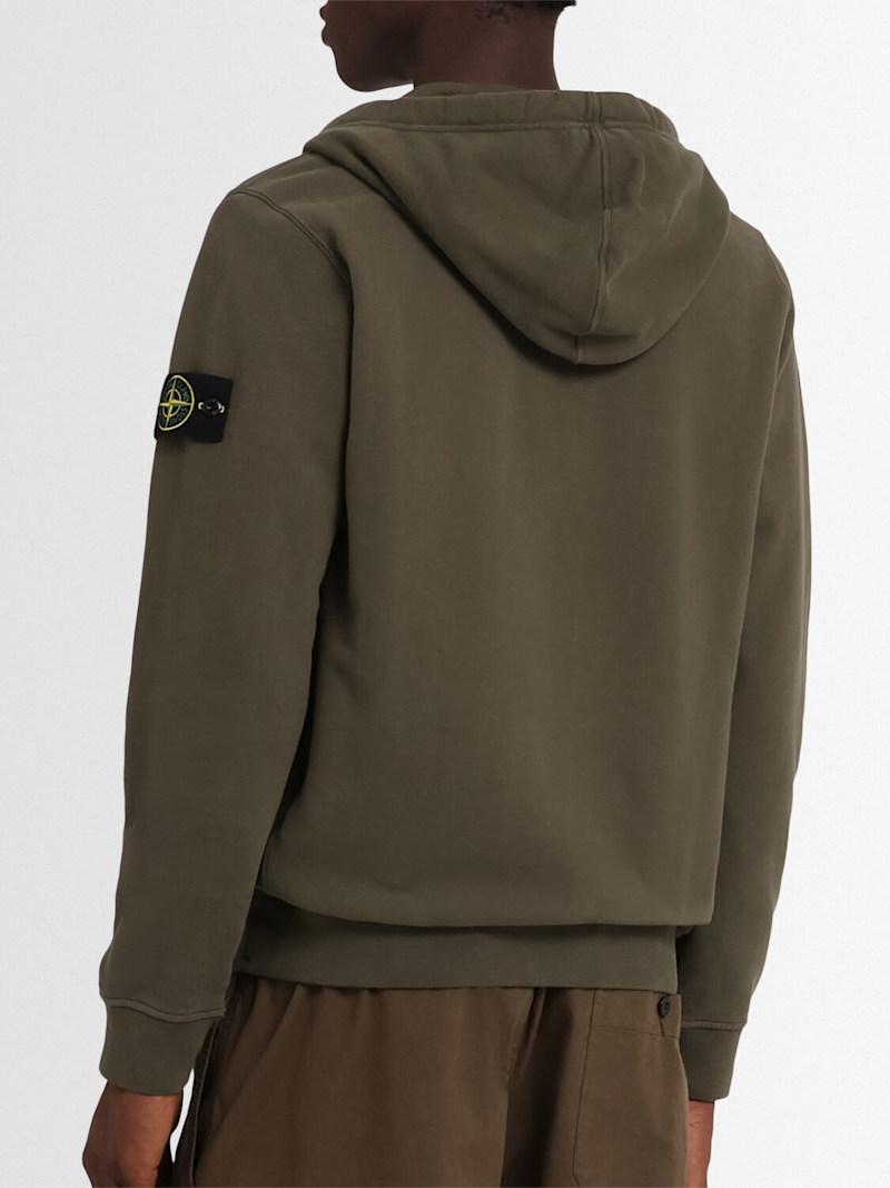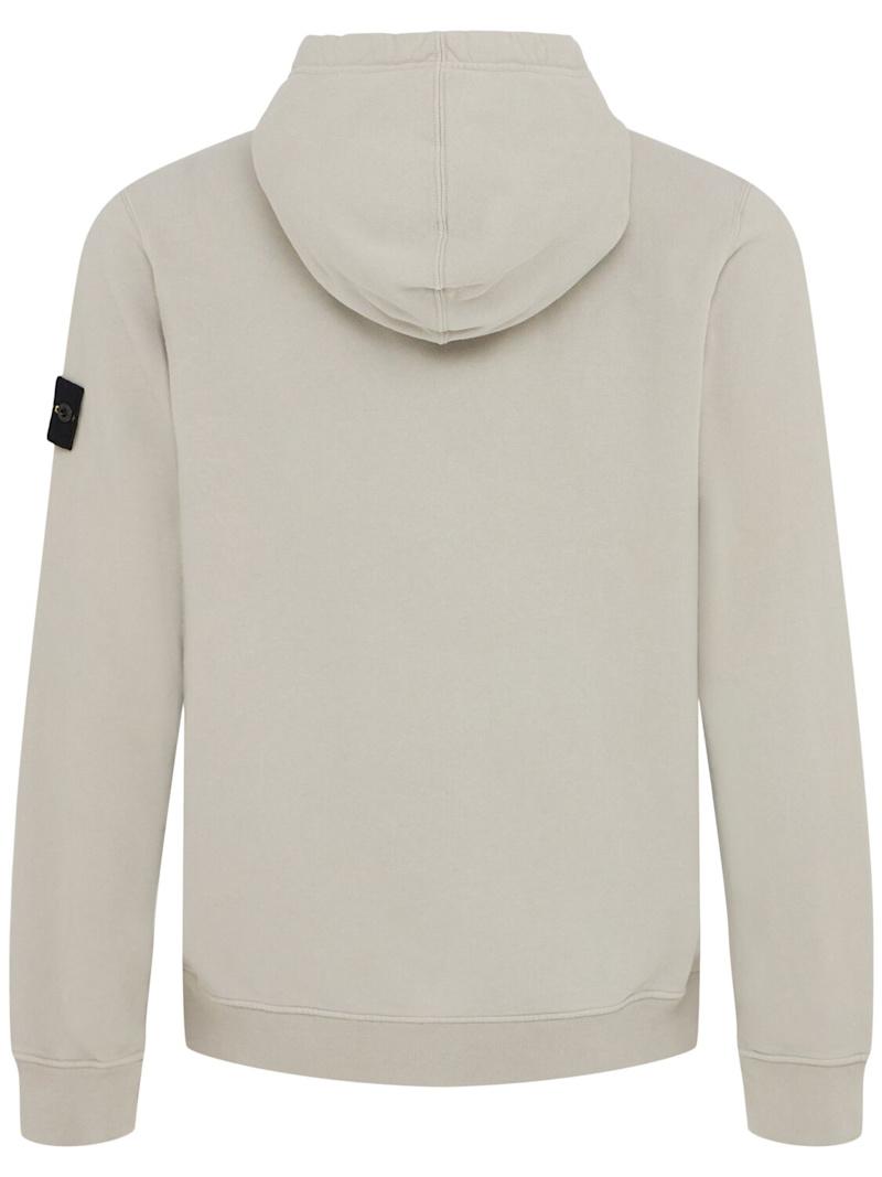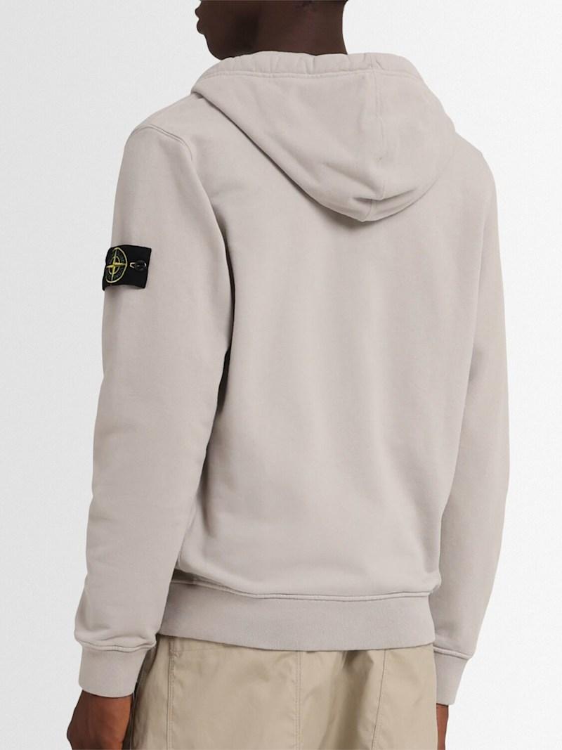 拉绒棉质连帽卫衣 - 珍珠灰 - 男士 - Stone Island - 不可拆卸风帽配有抽绳.