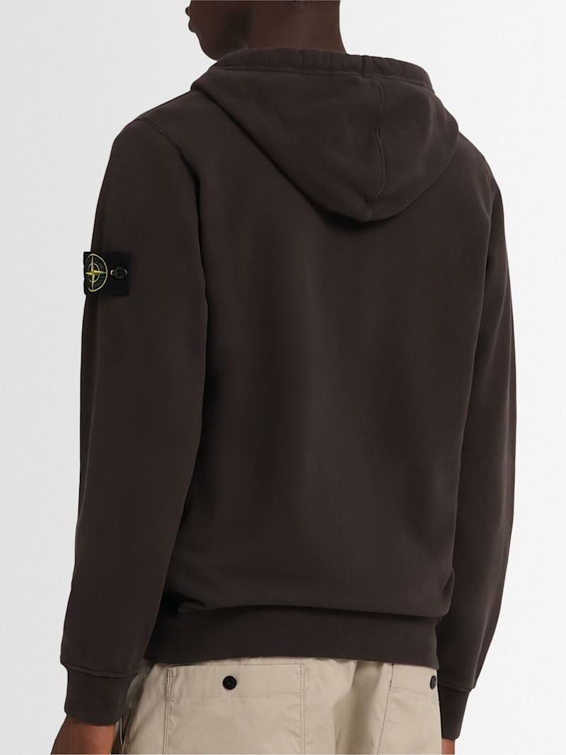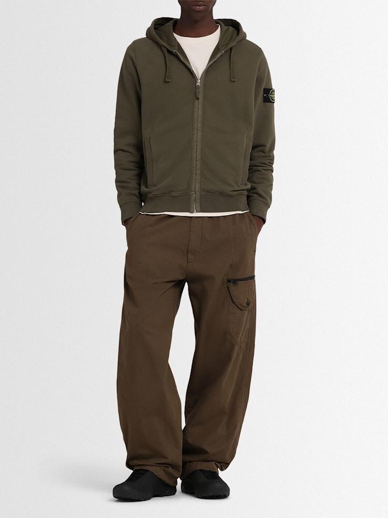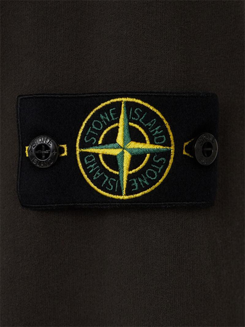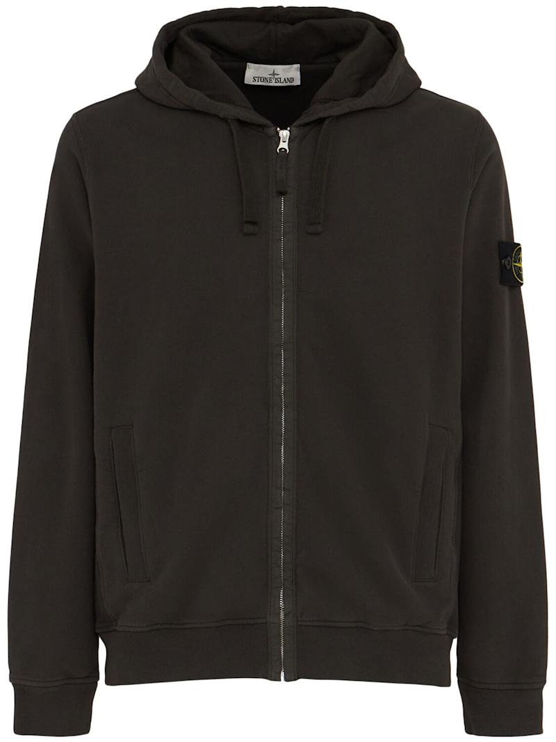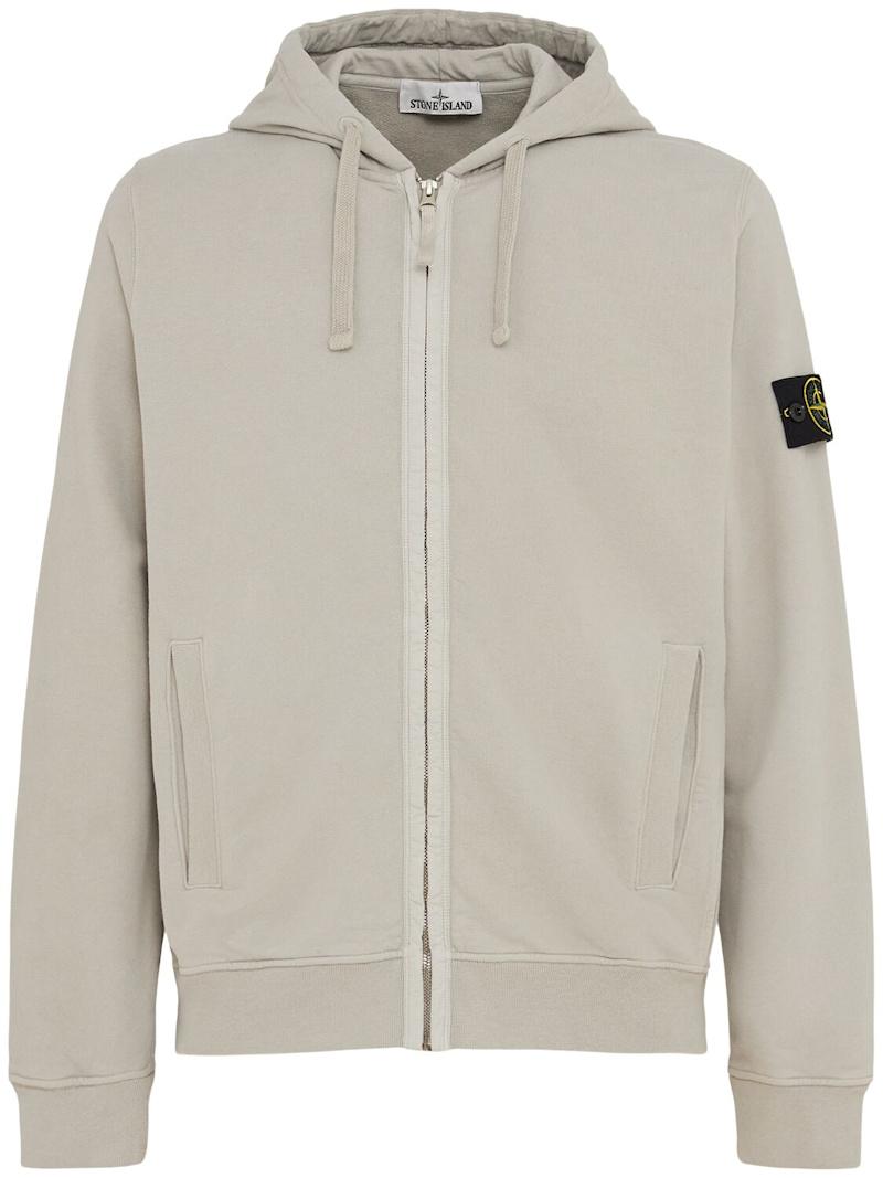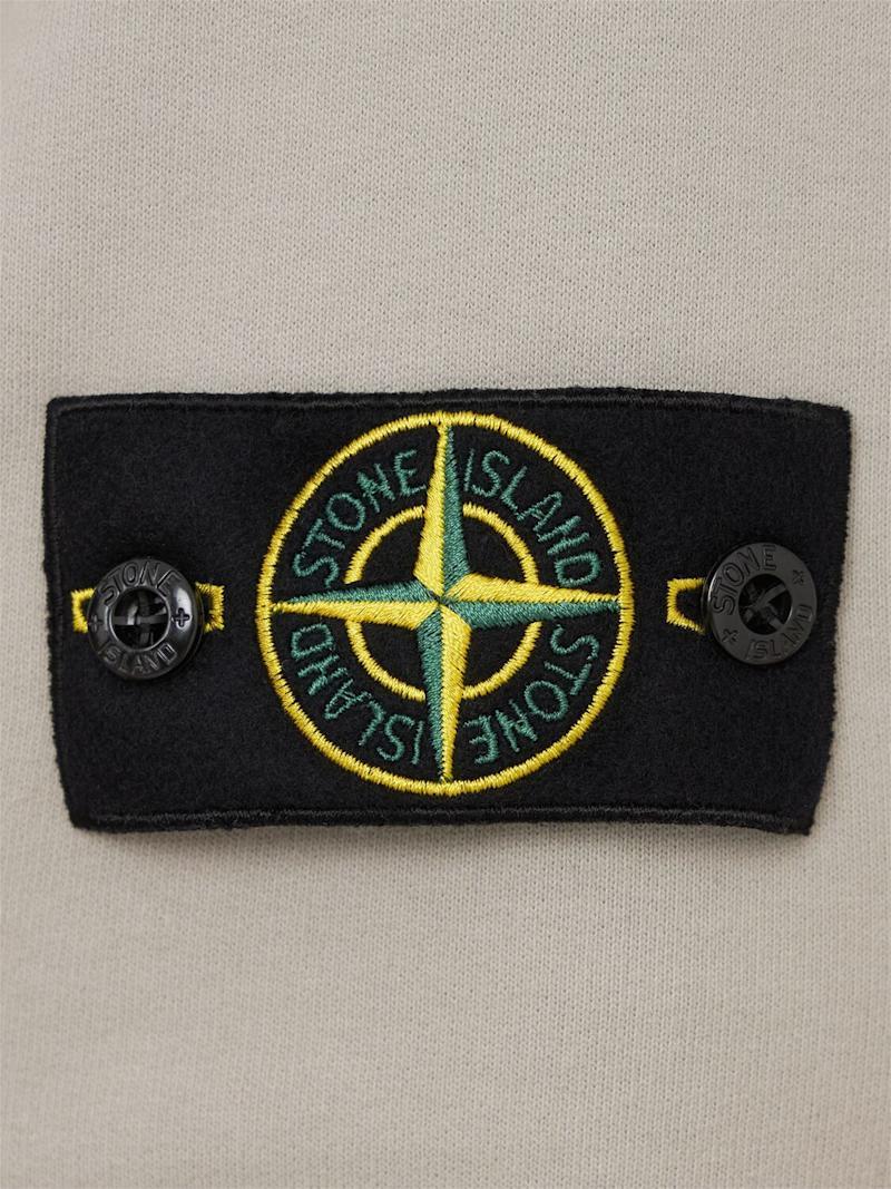 拉绒棉质连帽卫衣 - 珍珠灰 - 男士 - Stone Island - 不可拆卸风帽配有抽绳.