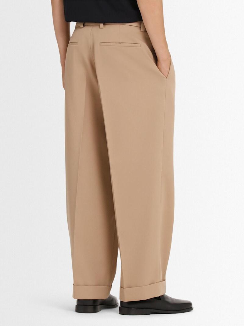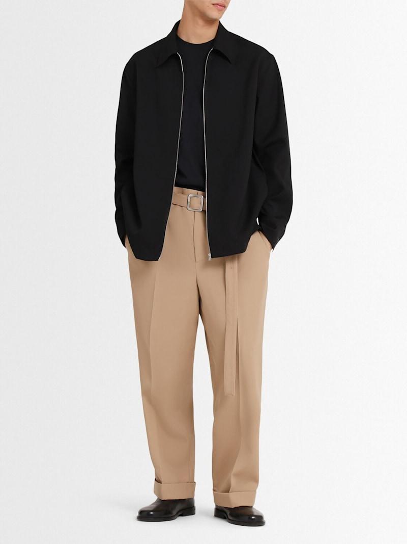 Relaxed版型羊毛华达呢短款裤子 - 卡其色 - 男士 - Jil Sander - 正面隐形钩扣开合.