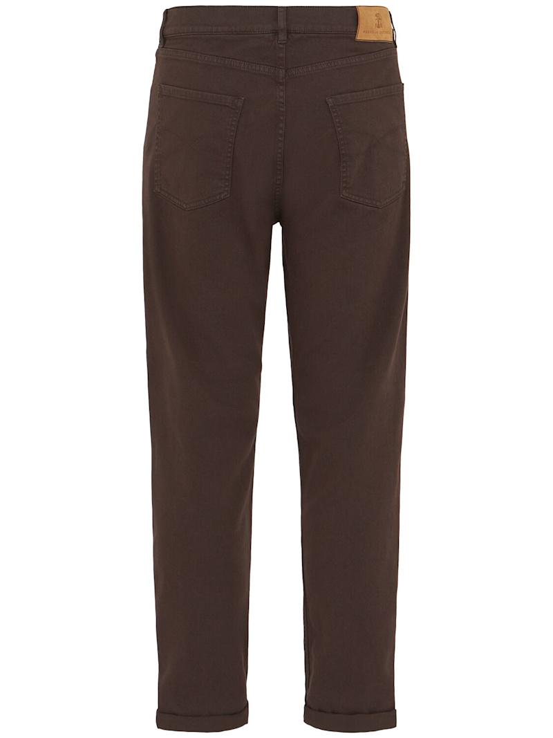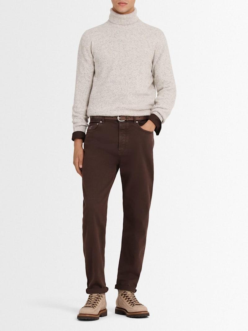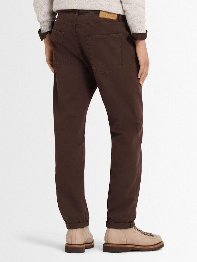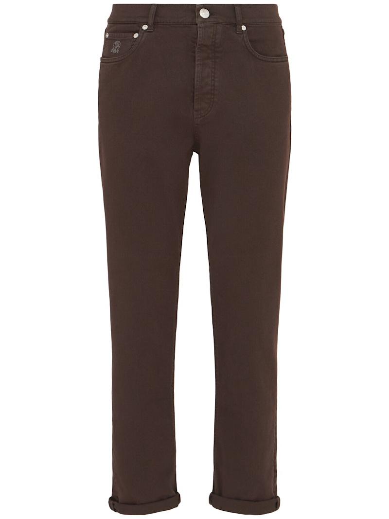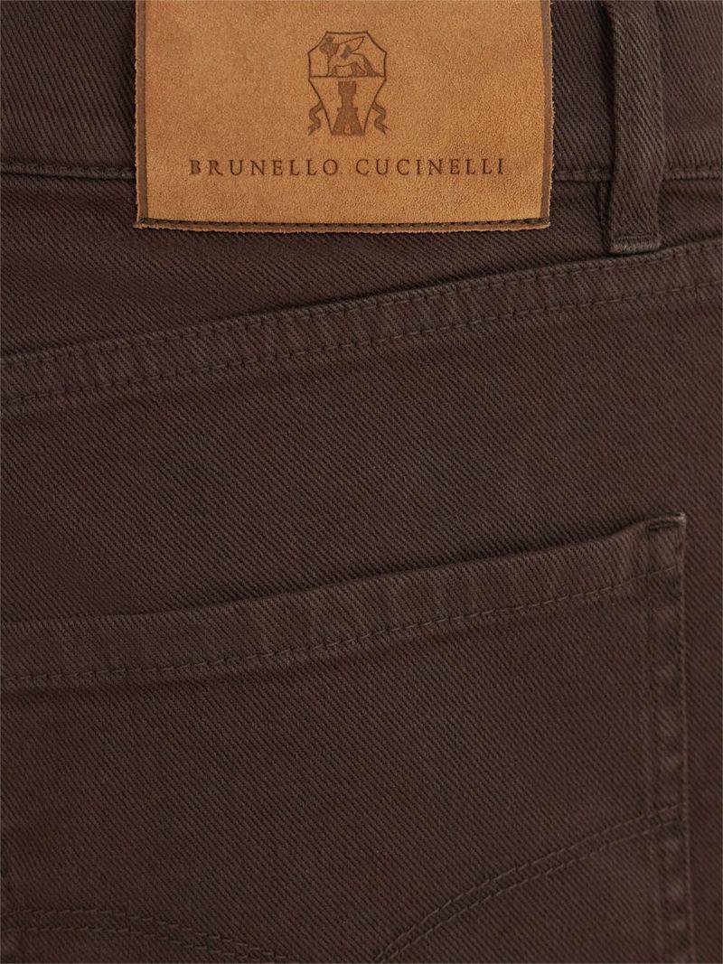 弹力棉质牛仔裤 - 棕色 - 男士 - Brunello Cucinelli - 正面纽扣和隐藏式拉链开合.