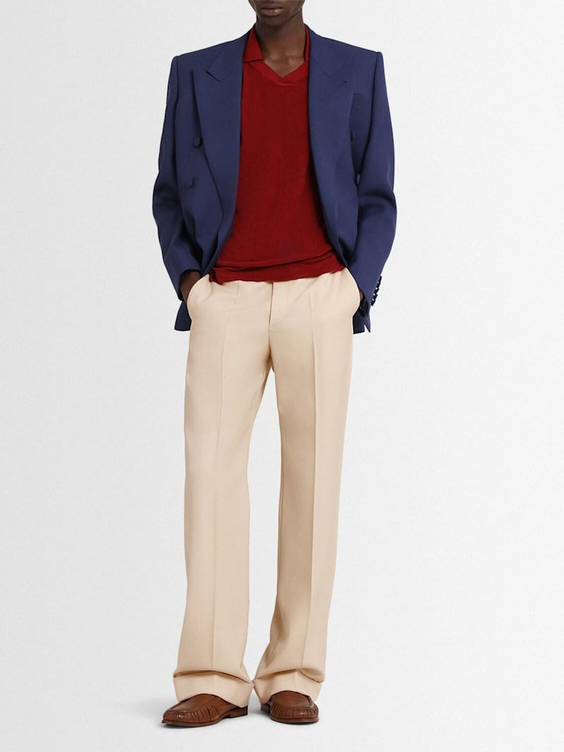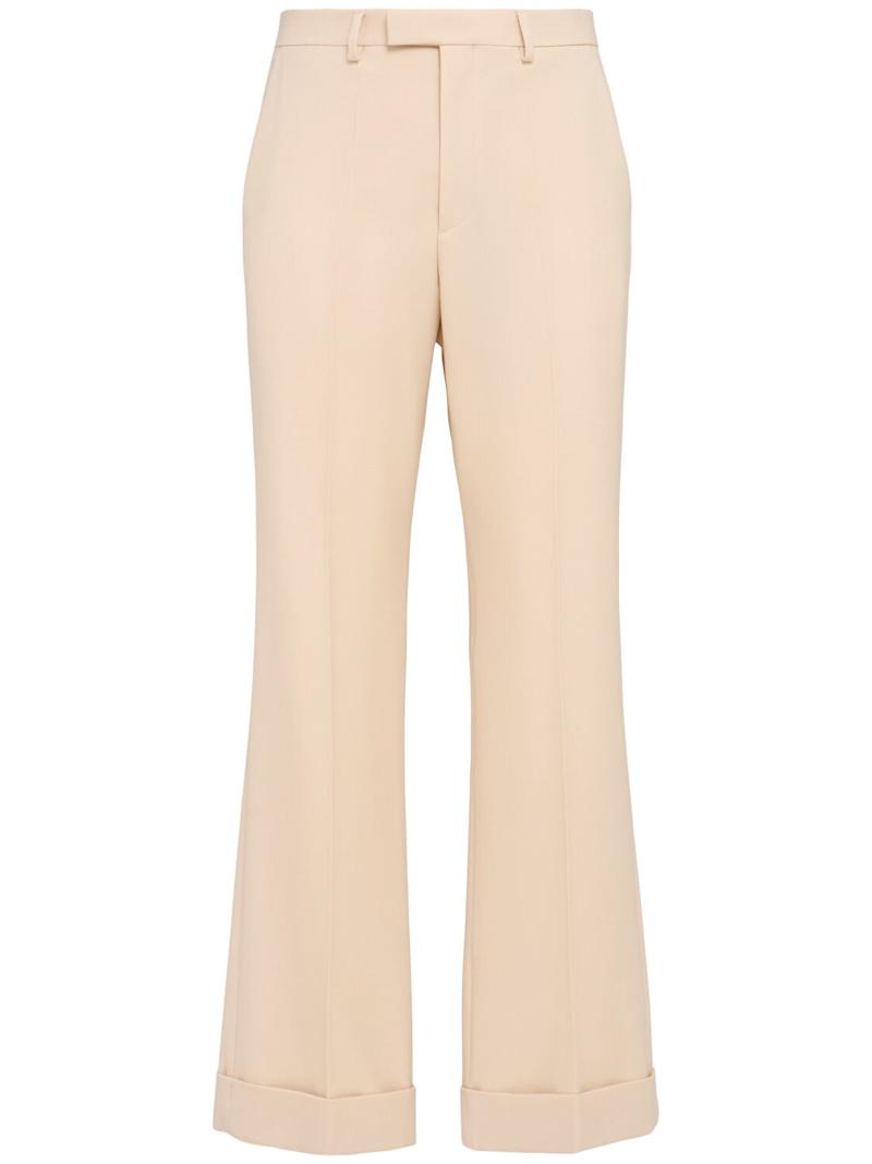 羊毛华达呢正装裤 - 米黄色 - 男士 - Valentino - 隐藏式正面粘扣开合.