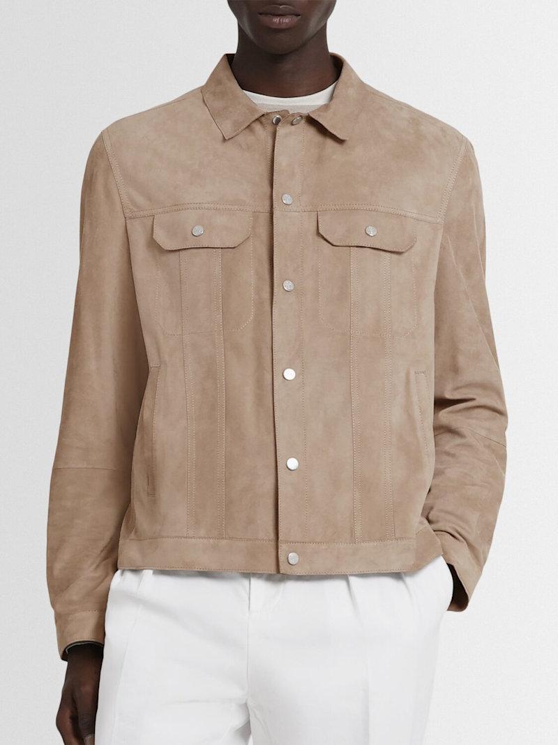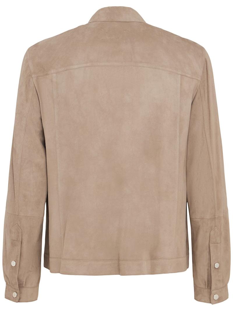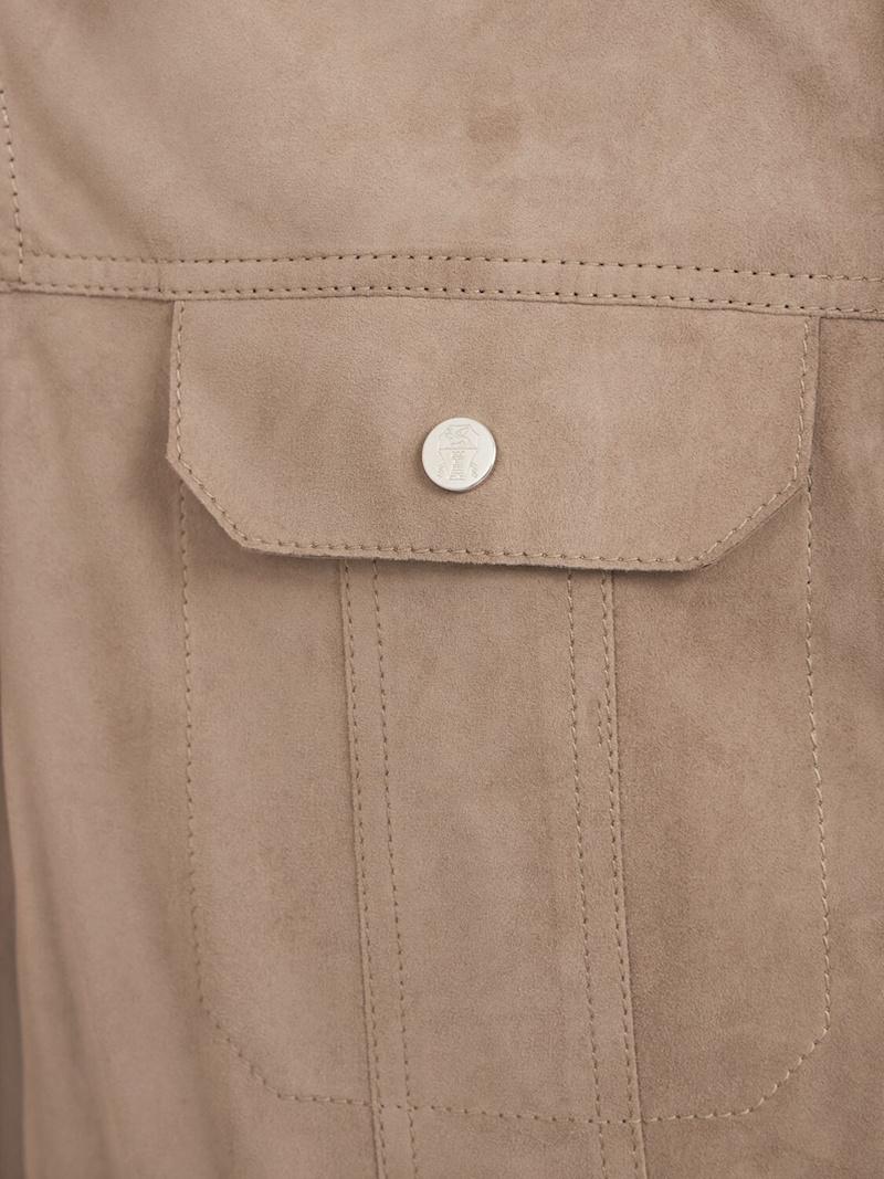 皮革衬衫式夹克 - Nocciola - 男士 - Brunello Cucinelli - 正面纽扣开合.