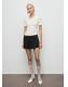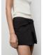 Confeccionada en tejido mezcla de algodón, esta prenda presenta un diseño mini de falda pantalón con tiro bajo. Incluye un pliegue en la parte delantera y un lazo decorativo