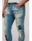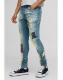 Skinny Fit Stacked PU Applique Washed Chain Jeans