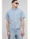 Style: Denim ShirtDesign: Fabric InterestFabric: DenimDetail: PlainNeckline: RevereSleeve Length: Short Sleeve Details & Care 85% Cotton, 15% Polyester. Model is 6'1 & wears UK size M/32