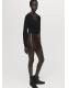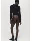 Esta falda pantalón con efecto de piel presenta un diseño mini y recto. Su estilo cruzado y tiro medio se complementan con un cierre de cremallera lateral