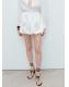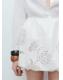 Tejido 100% algodón. Diseño corto. Estilo globo. Detalles florales bordados. Cintura elástica. Bajo abullonado. Sin cierre. Forro interior 100% algodón