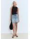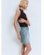 Tejido de algodón estilo tejano vaquero. Diseño corto. Diseño recto. Trabillas. Cinco bolsillos. Cierre de botón y cremallera. Disponible Plus